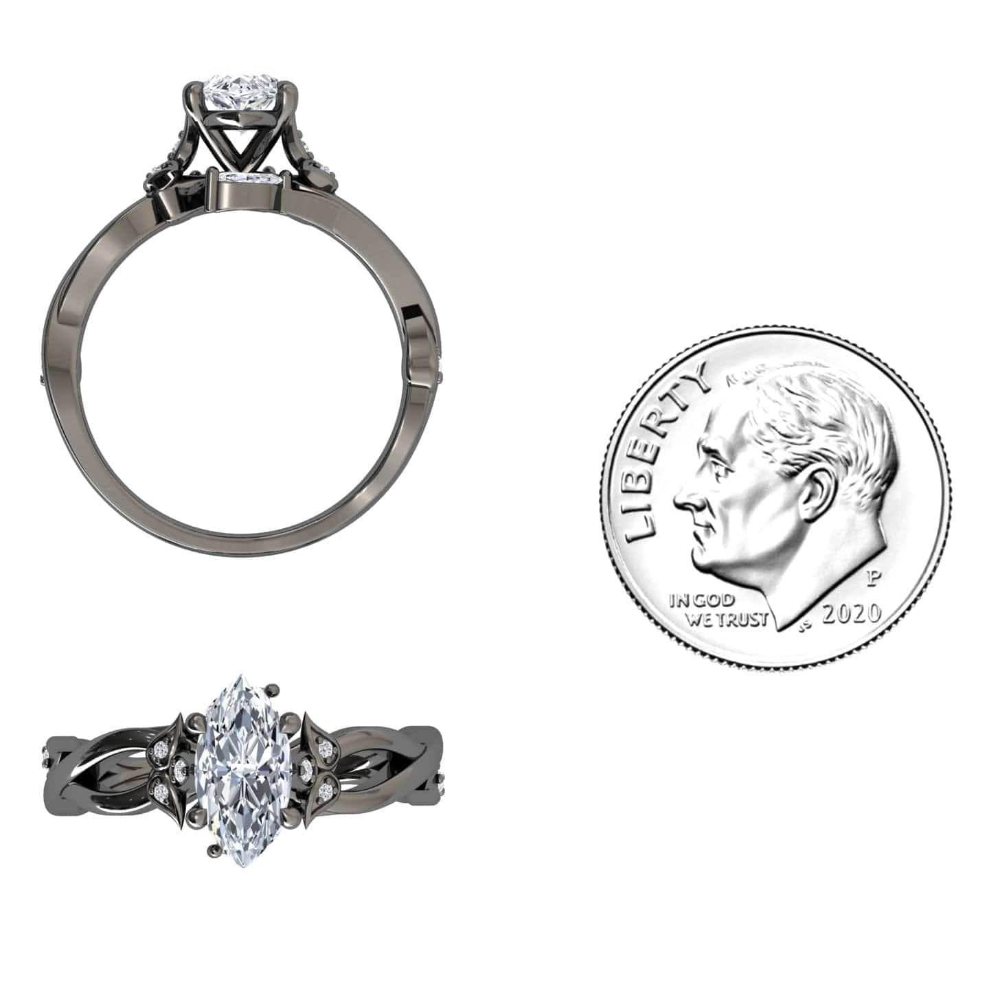 White Diamond Nature-Inspired Vine Engagement Ring - Zhongyi