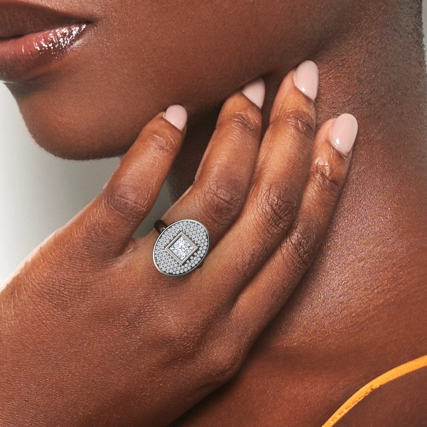 Home / All Engagment Ring / Halo / White Diamond Oval Bezel Pave Cocktail Engagement Ring - Leah