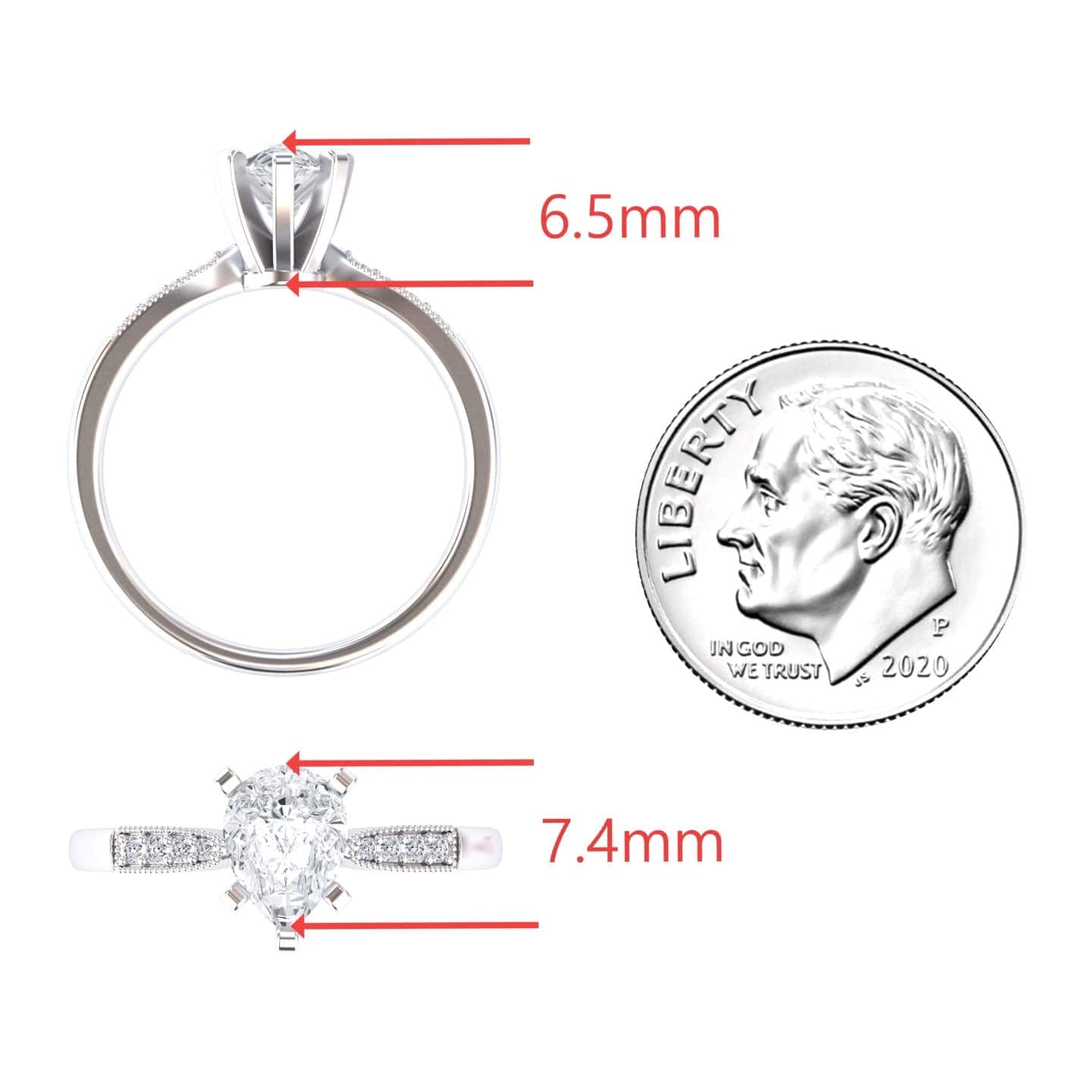 White Diamond Pave Accent & Milgrain Engagement Ring - Sharon