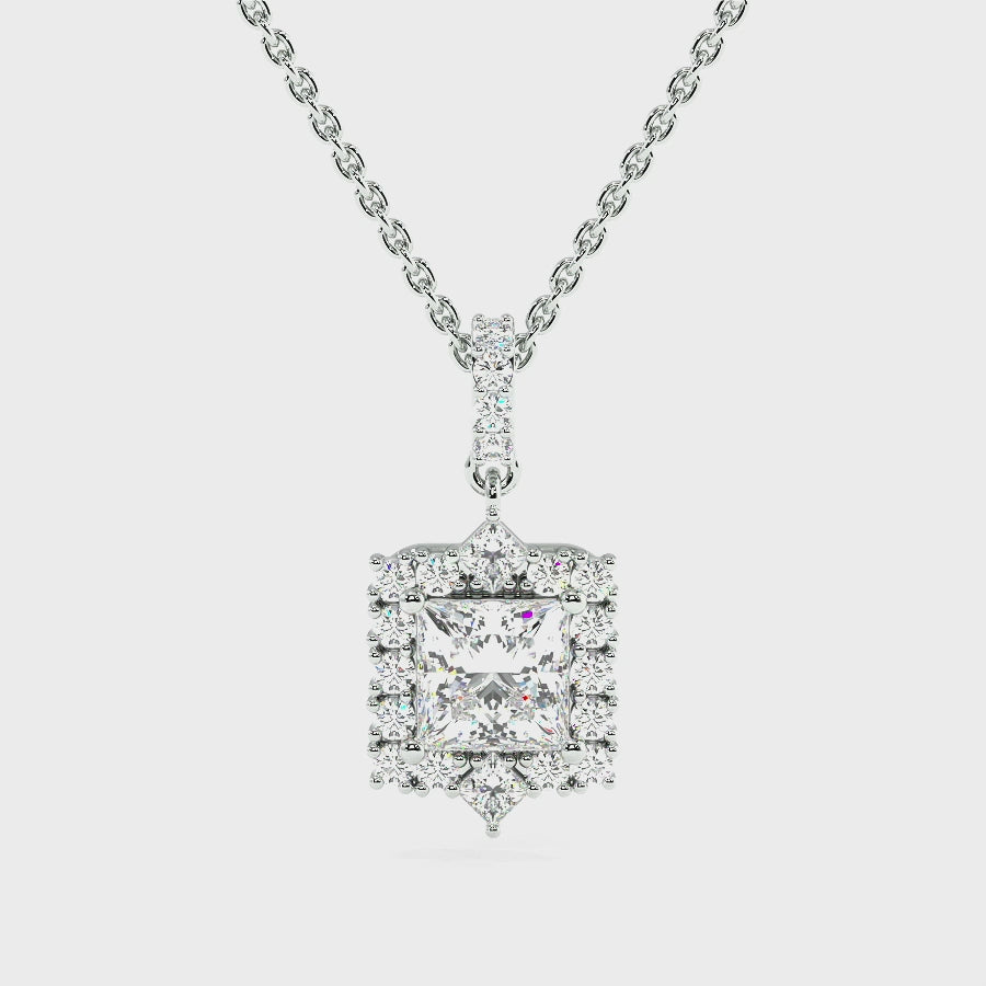 Home / All Diamond Necklace / White Diamond Pave Bail Halo Drop Necklace - Shelby