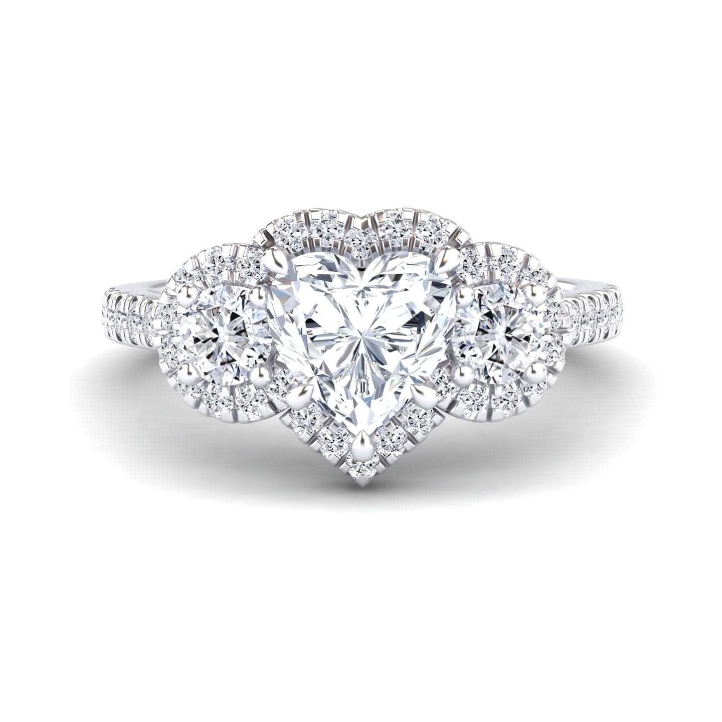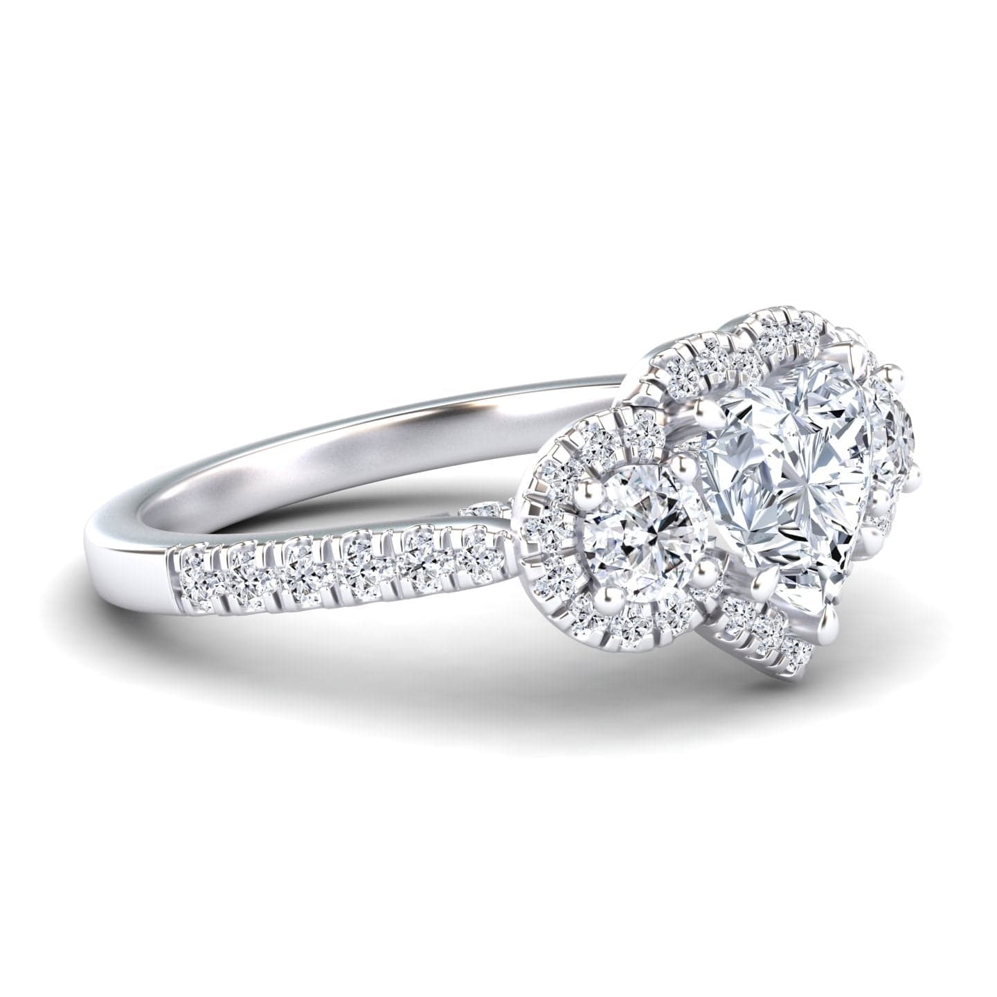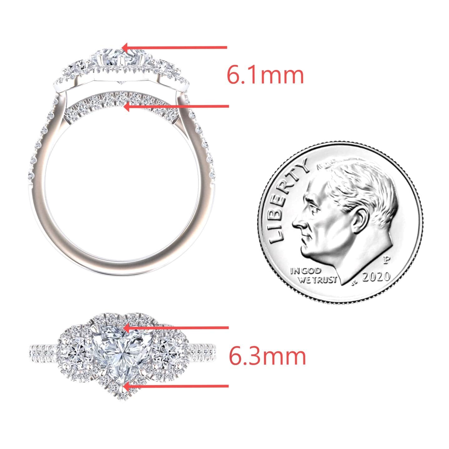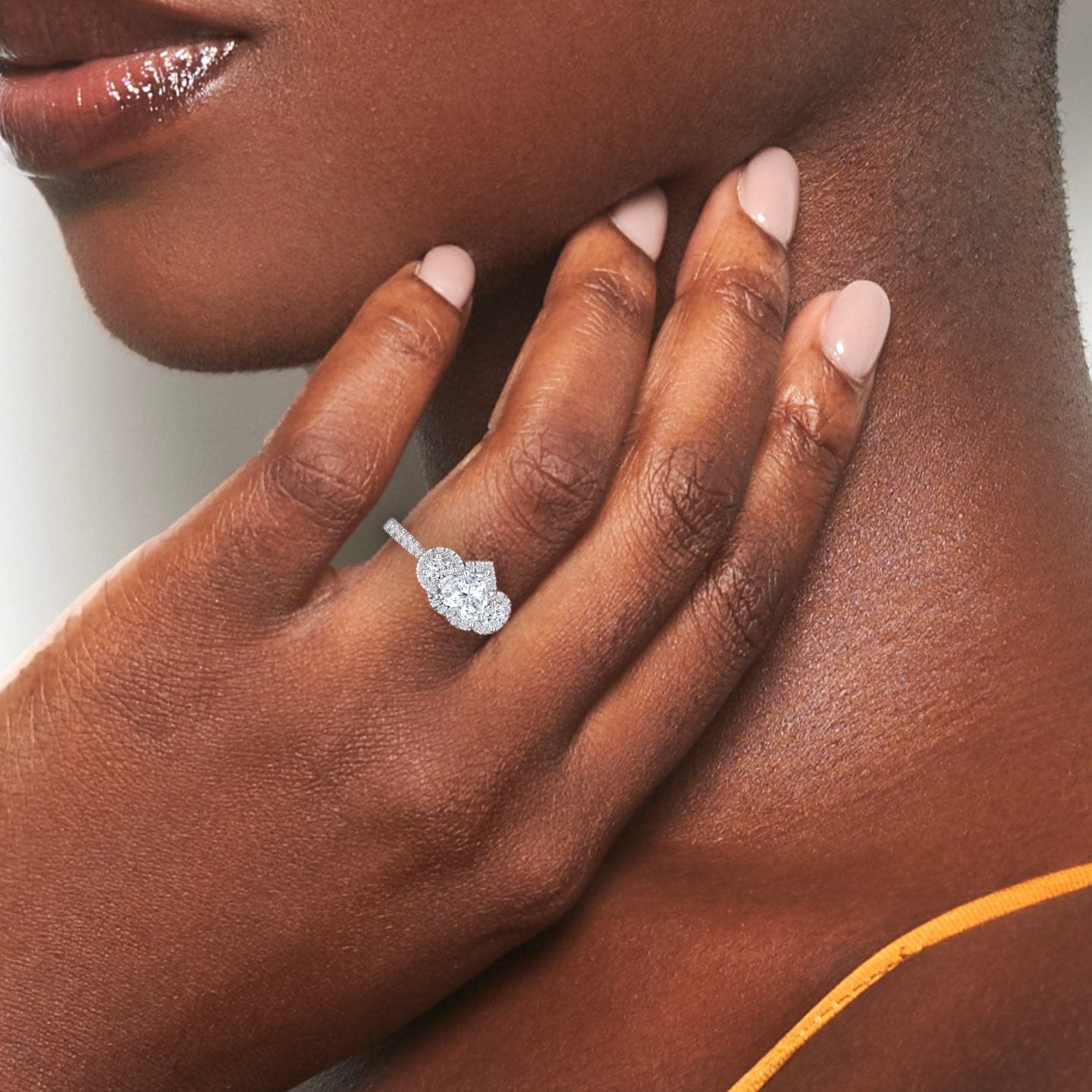 Yiran White Diamond Pave Band Three Stone Halo Engagement Ring