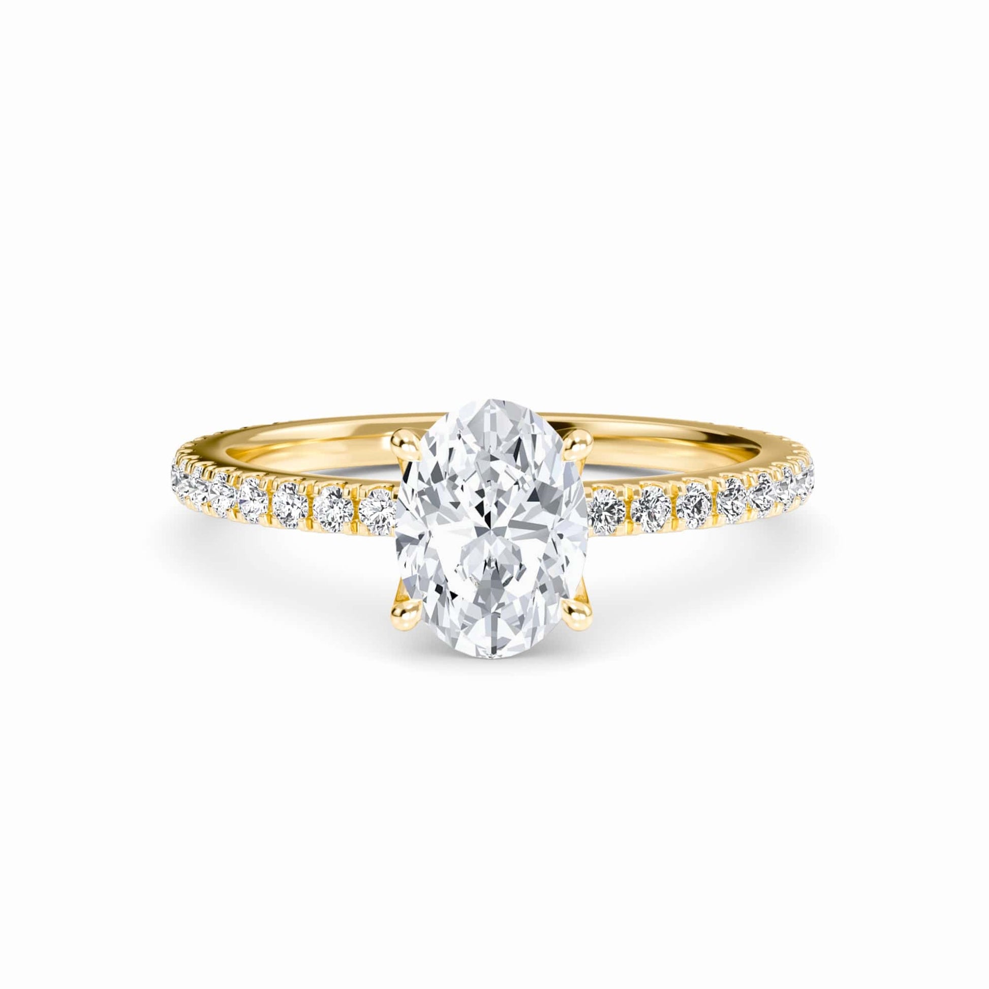 Home / White Diamond Pave Set Four-Prong Solitaire Engagement Ring - Brynlee - 18K Yellow Gold - 0.200 Carat Oval Diamond