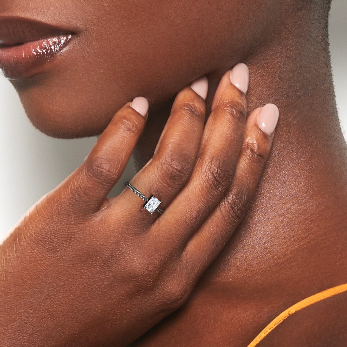 Celebrate timeless elegance with our White Diamond Rope-Textured Shank Engagement Ring – Crystal, featuring a brilliant marquise or round accent diamond. Meticulously crafted in your choice of 18k White, Rose, Yellow, Blackened Gold, or luxurious Platinum, this nature-inspired design weaves classic beauty with modern texture for a stunning statement.