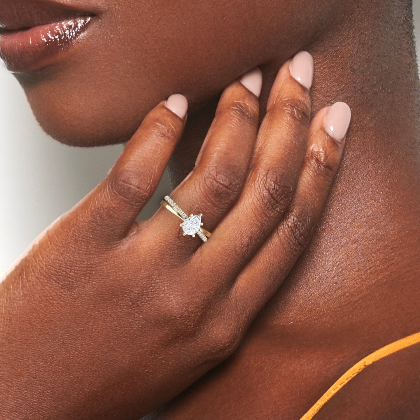 White Diamond Solitaire Dual-Band Pave Engagement Ring - Athena