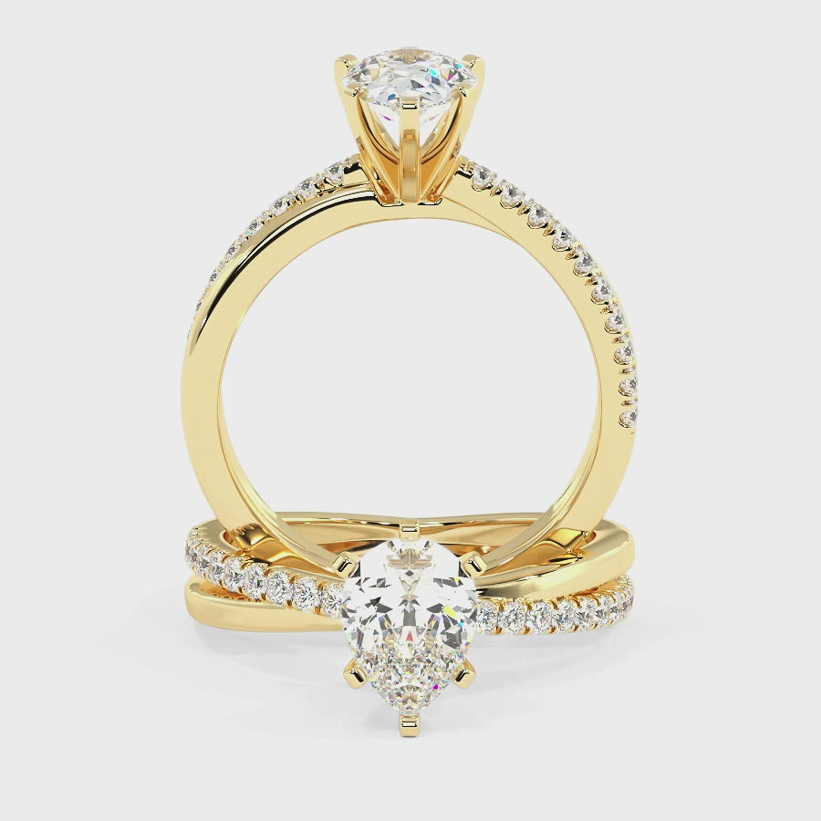 Athena White Diamond Solitaire Dual-Band Pave Engagement Ring