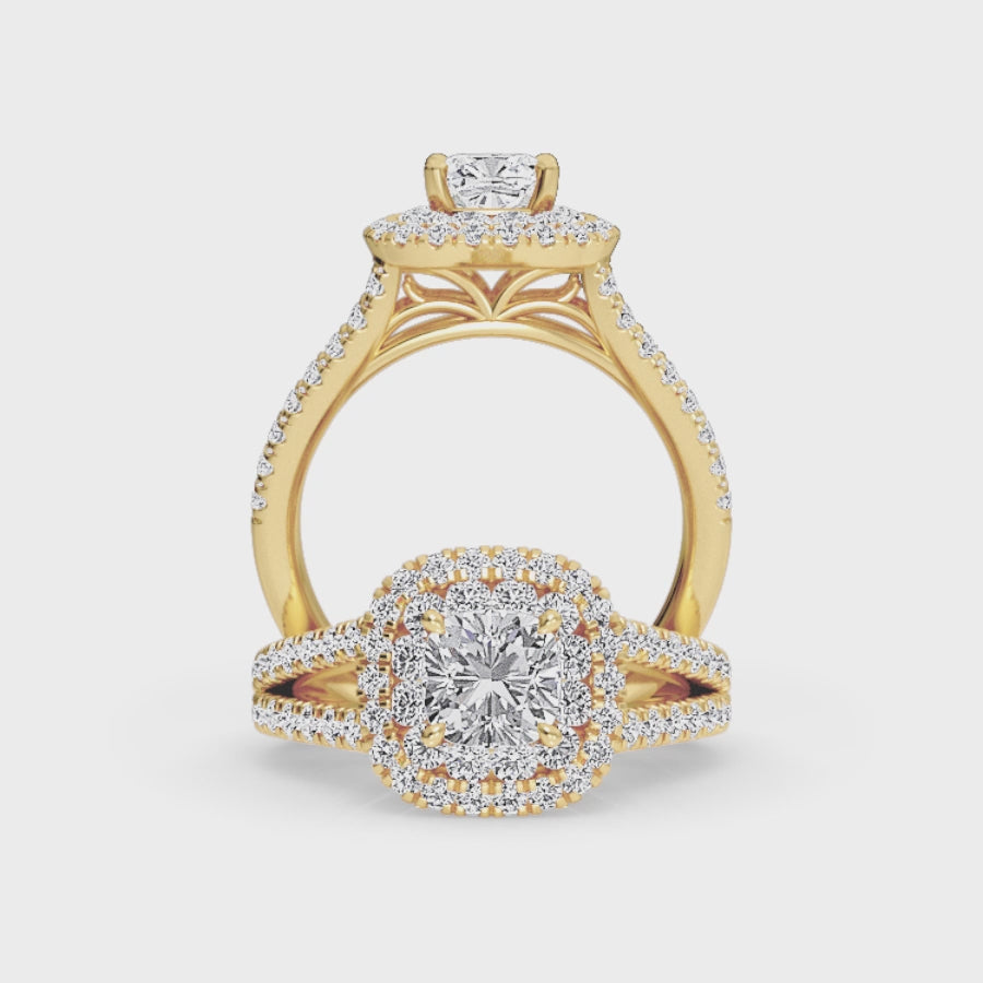 White Diamond Split Shank Double Halo Engagement Ring - Ananya