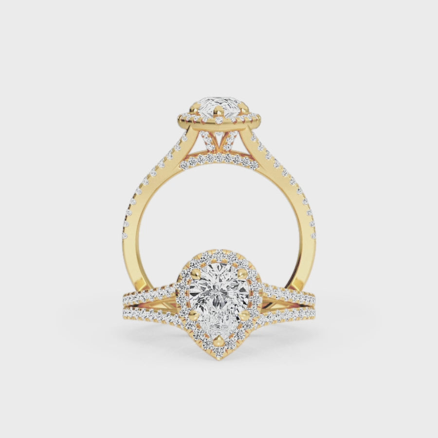 White Diamond Split Shank Halo Engagement Ring - Margot