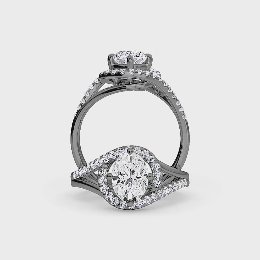 Home / All Engagment Ring / Halo / White Diamond Split Shanke Twisting Halo Pave-Set Accented Engagement Ring - Lucy