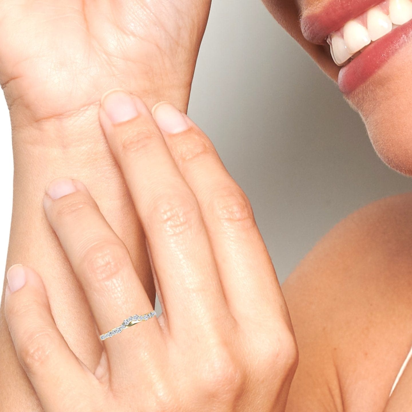 White Diamond Stackable Curved Wedding Ring - Shaina
