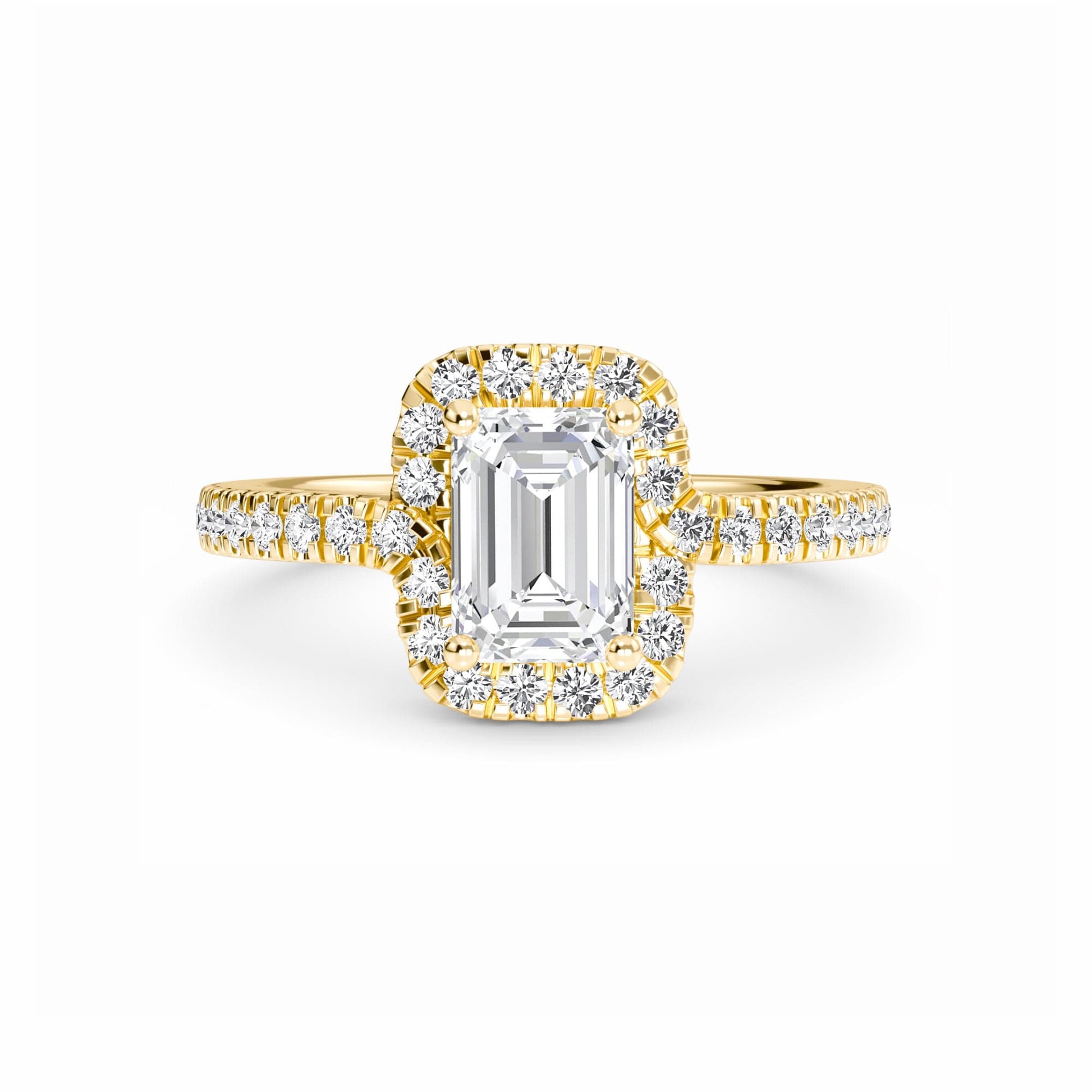 Home / White Diamond Swirl Halo Engagement Ring - Julieta - 18K Yellow Gold - 0.220 Carat Emerald Diamond