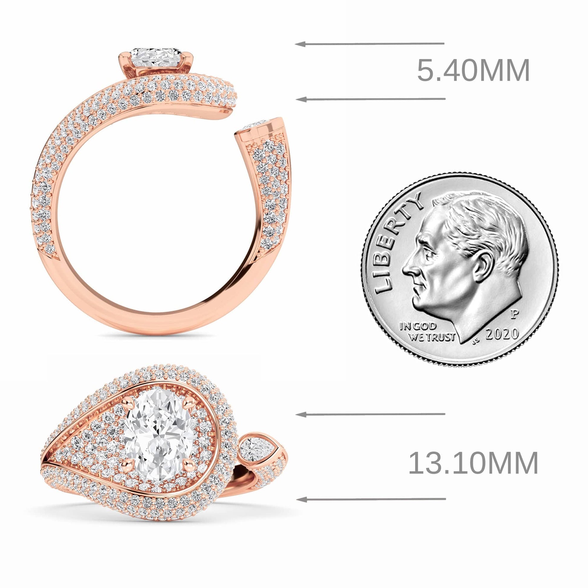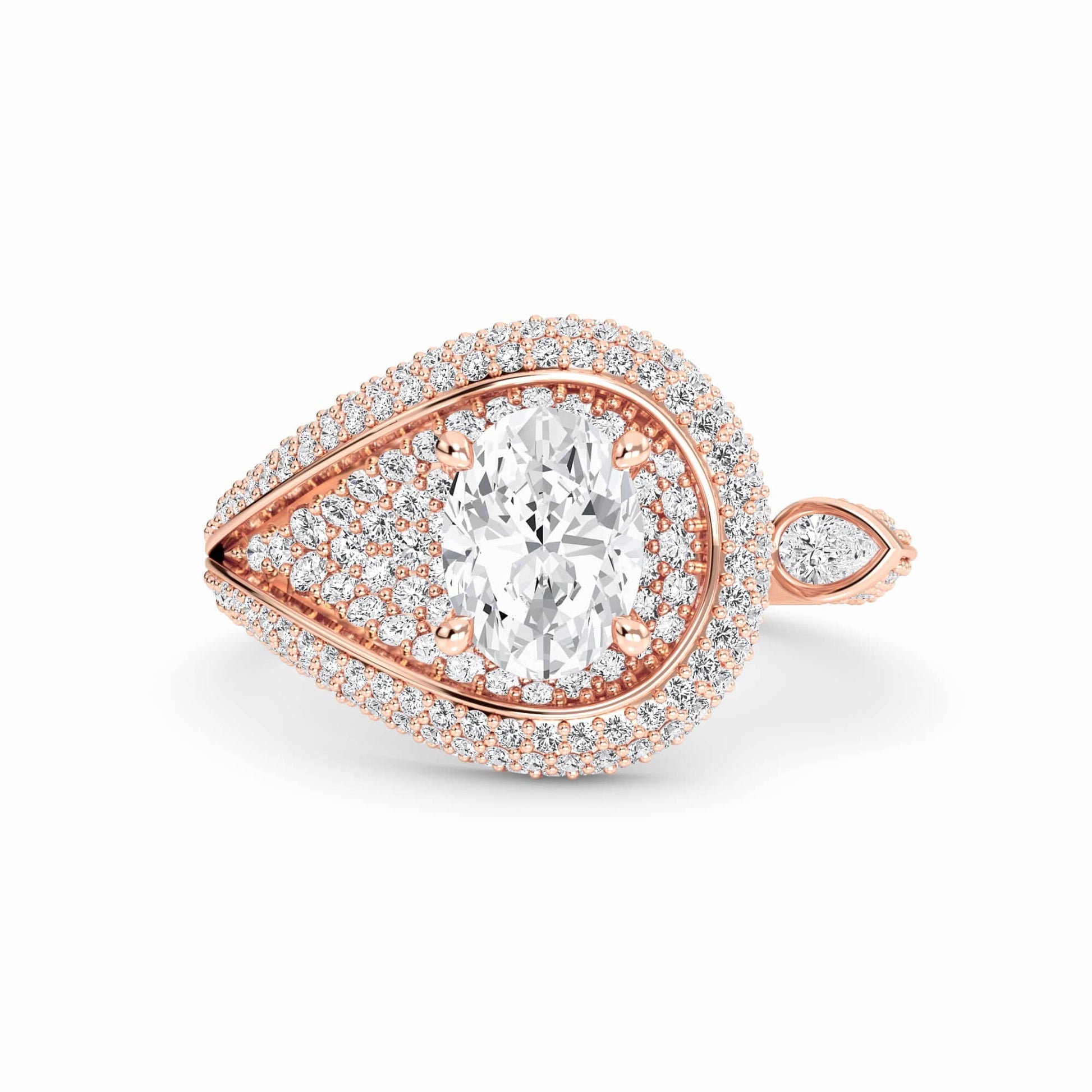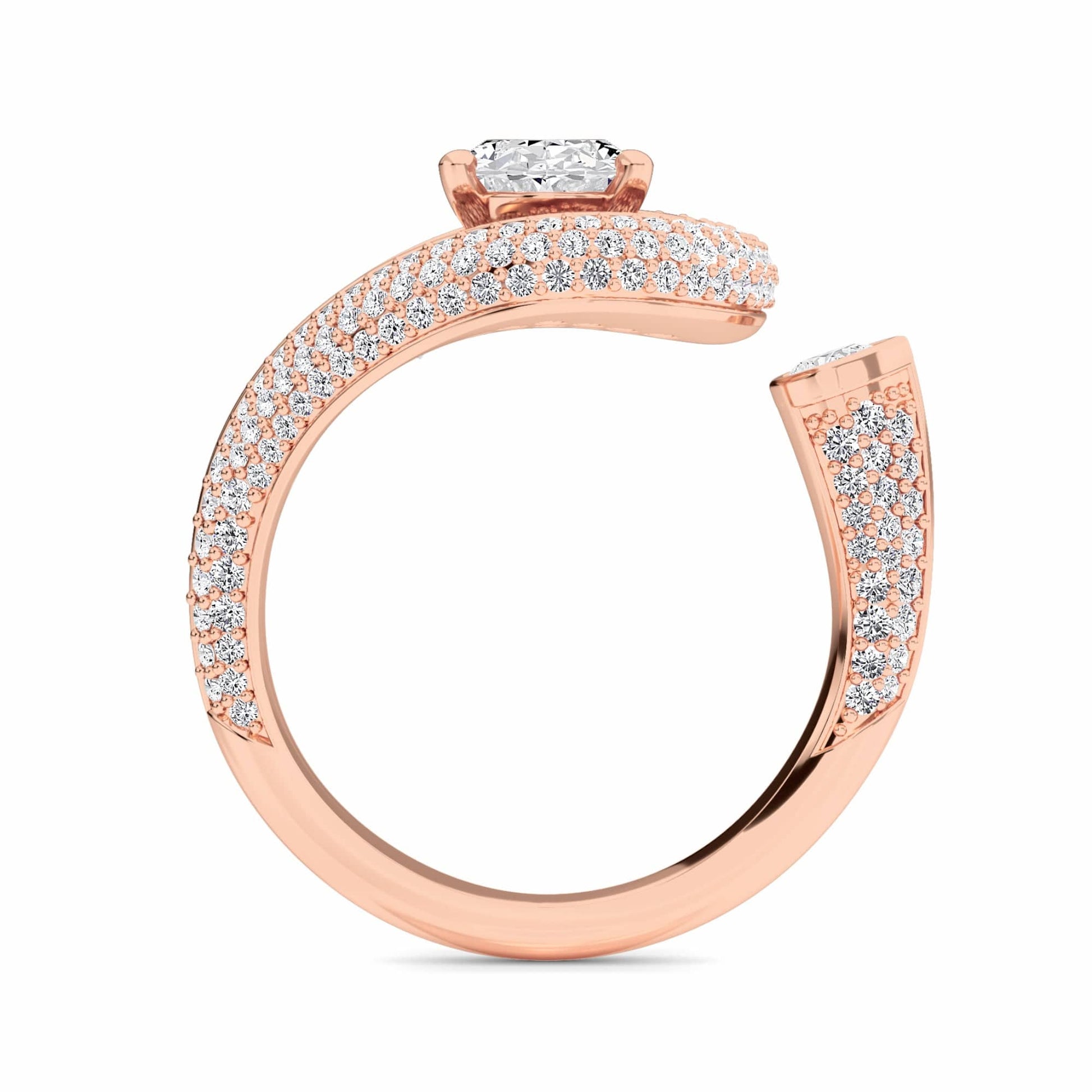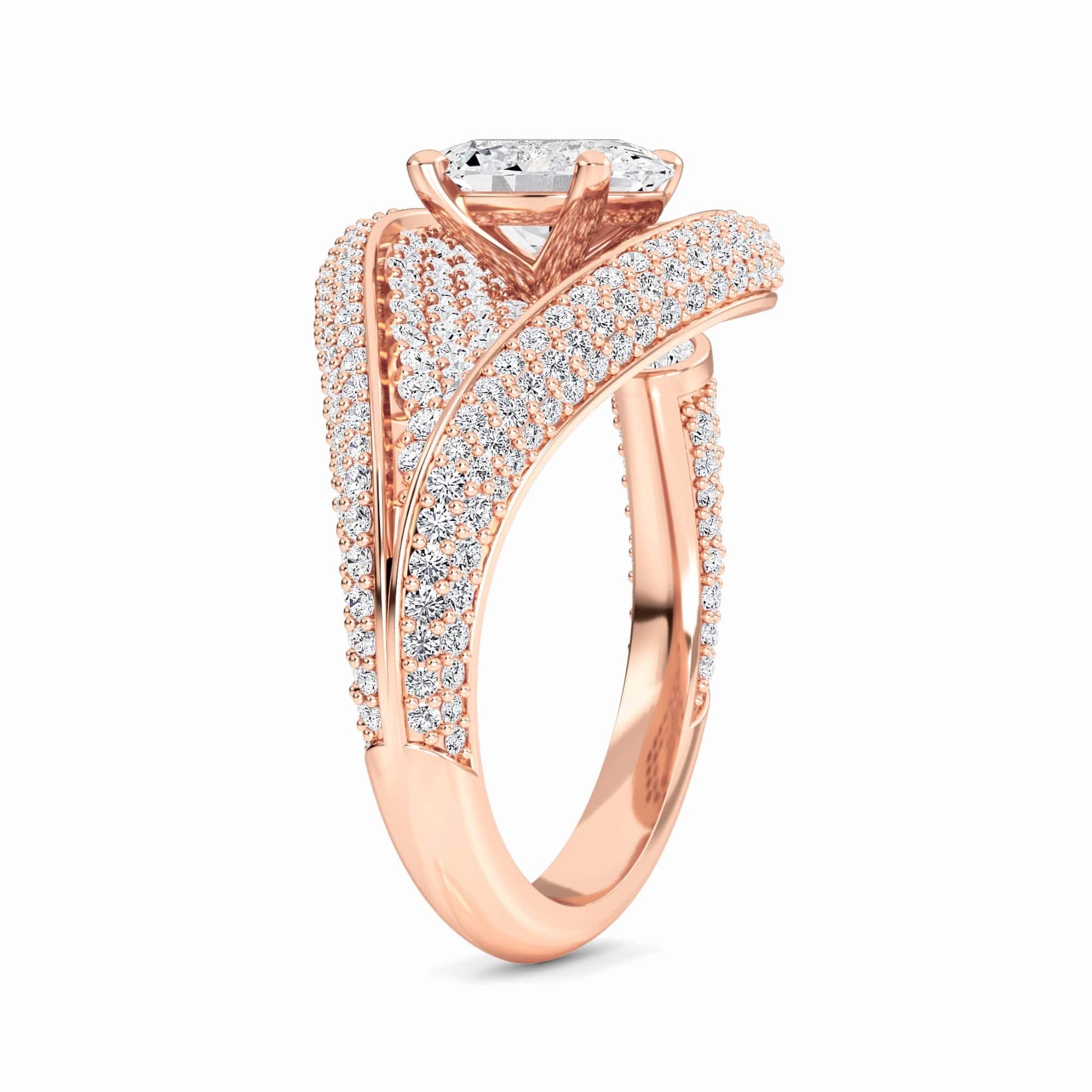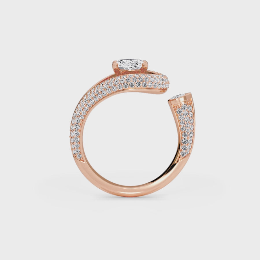 The Marisol engagement ring showcases an elegant swirl band adorned with round and a pear-cut diamond accent, creating a graceful, flowing design. Crafted in your choice of 18K White, Yellow, Rose, Blackened Gold, or Platinum, it's a dazzling blend of sophistication and fluid form.