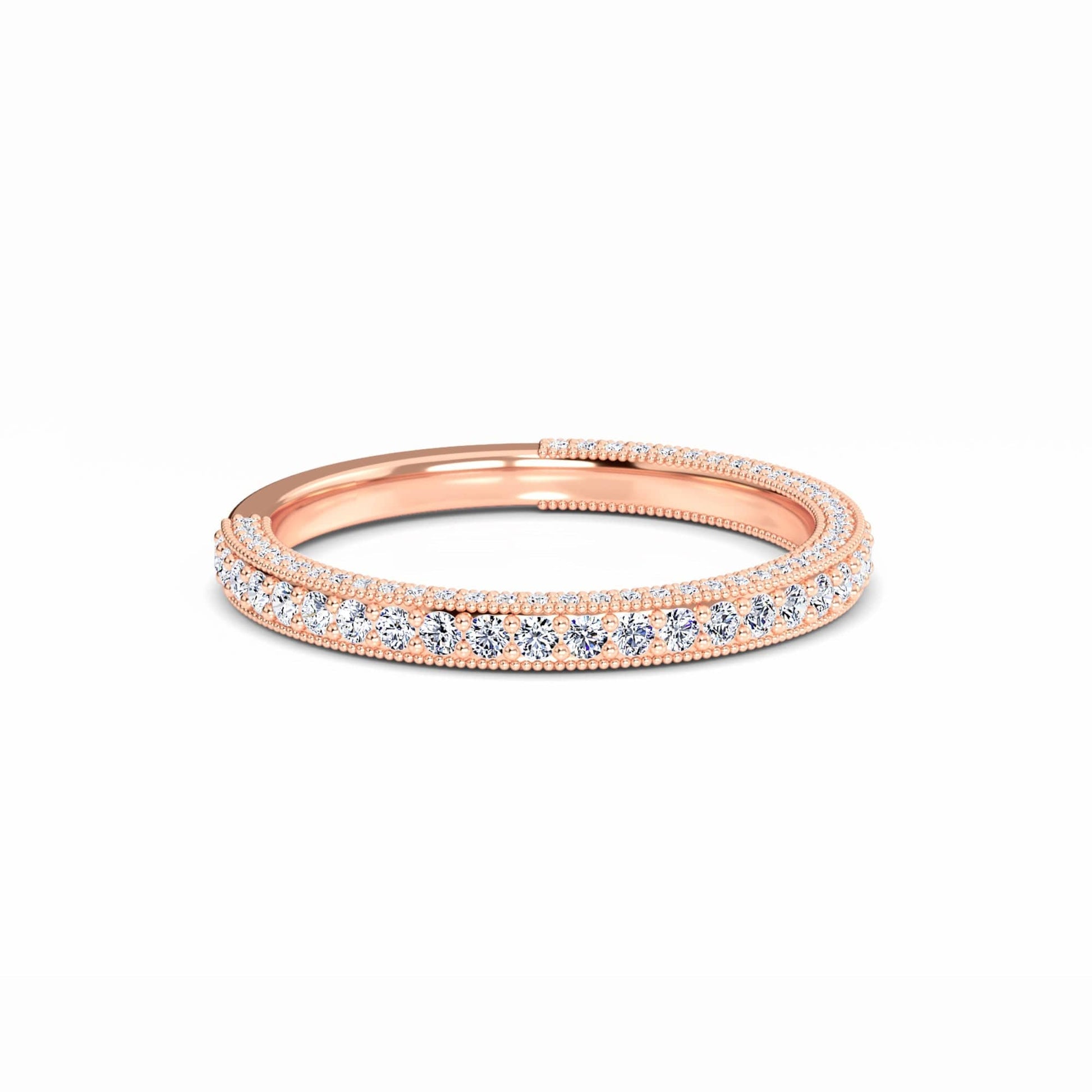 The White Diamond Three-Quarter Milgrain Eternity Pave Band – Selena dazzles with 196 round diamonds set in a refined pave setting, accentuated by vintage-inspired milgrain detailing. Available in 18K white, rose, yellow, blackened gold, or platinum, this band offers timeless elegance with a touch of antique charm.