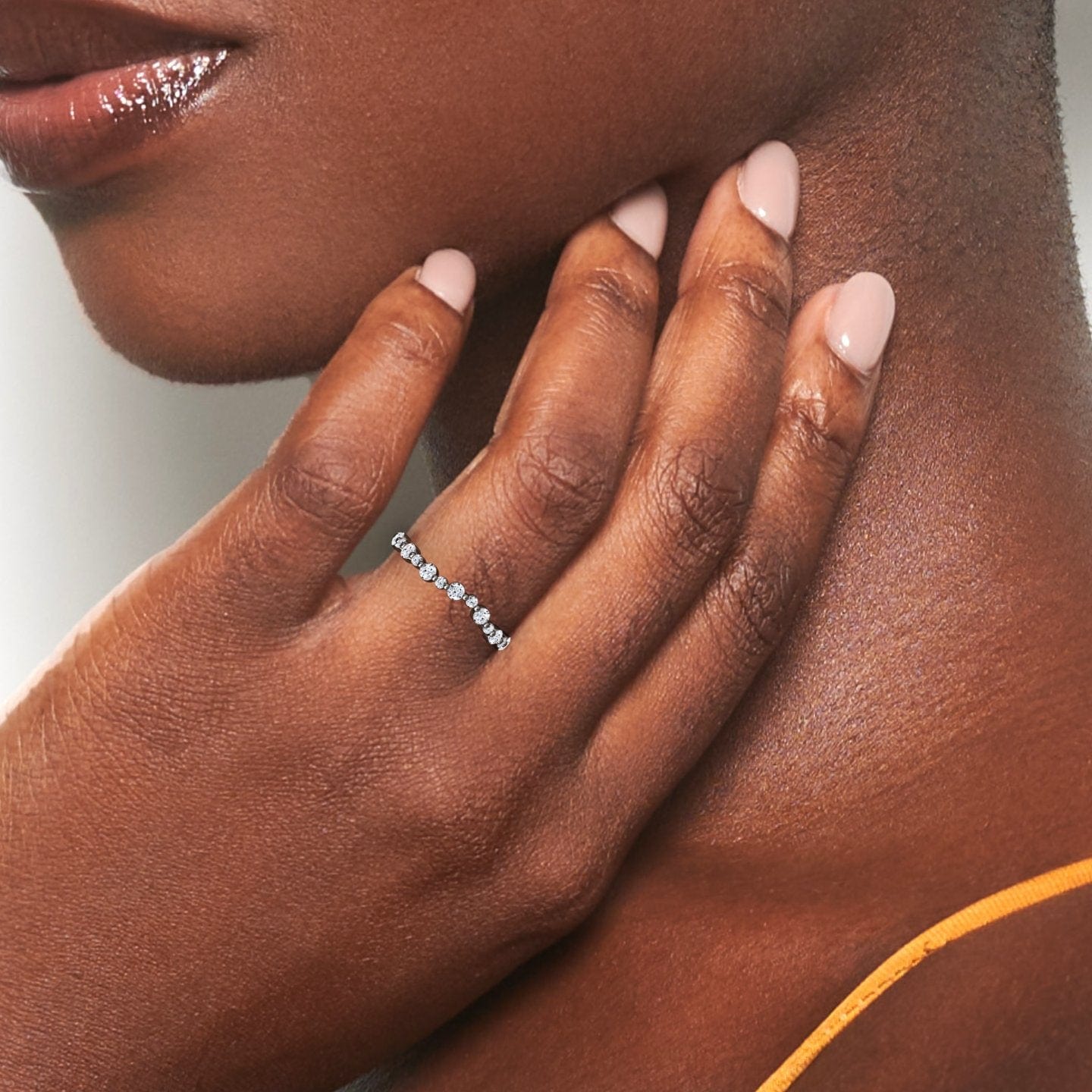 Home / Jewelry / Rings / Women's Wedding Ring / White Diamond Three-Quarter Modern Curved Wedding Band - Xinyi