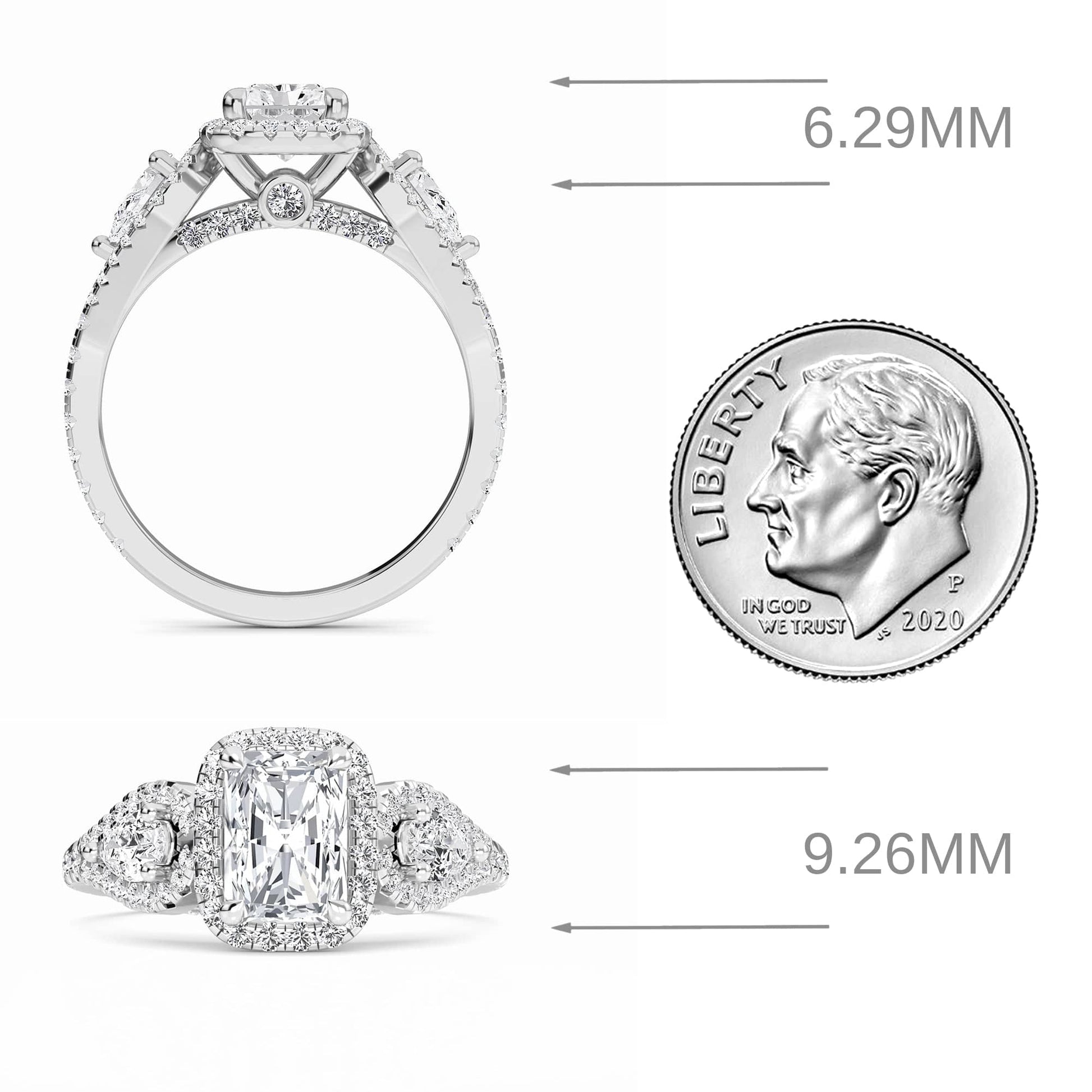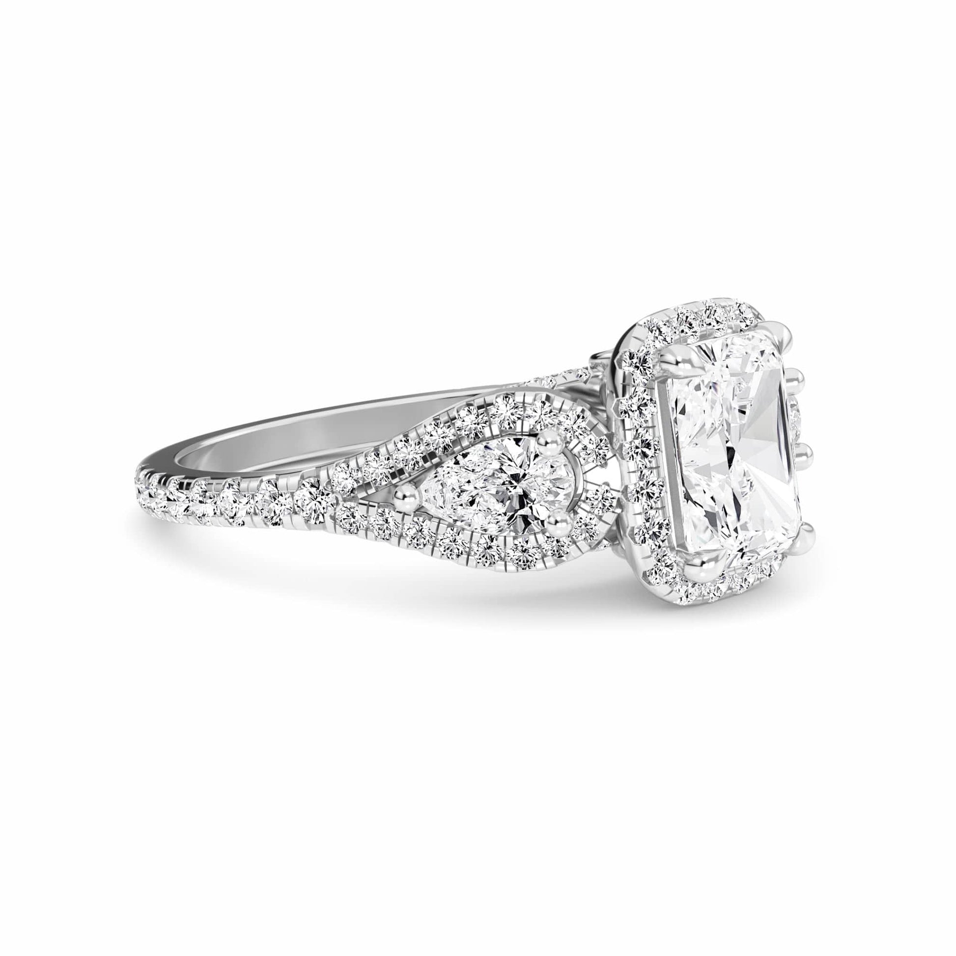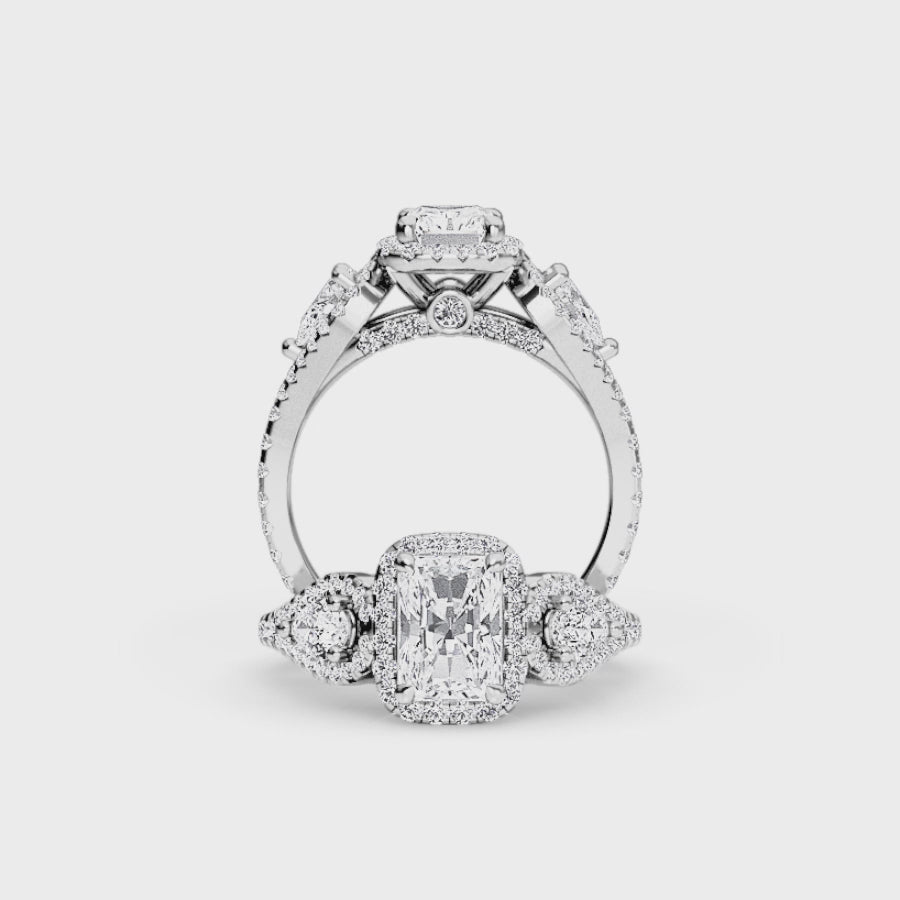 White Diamond Three-Stone Halo Engagement Ring - Hadleigh