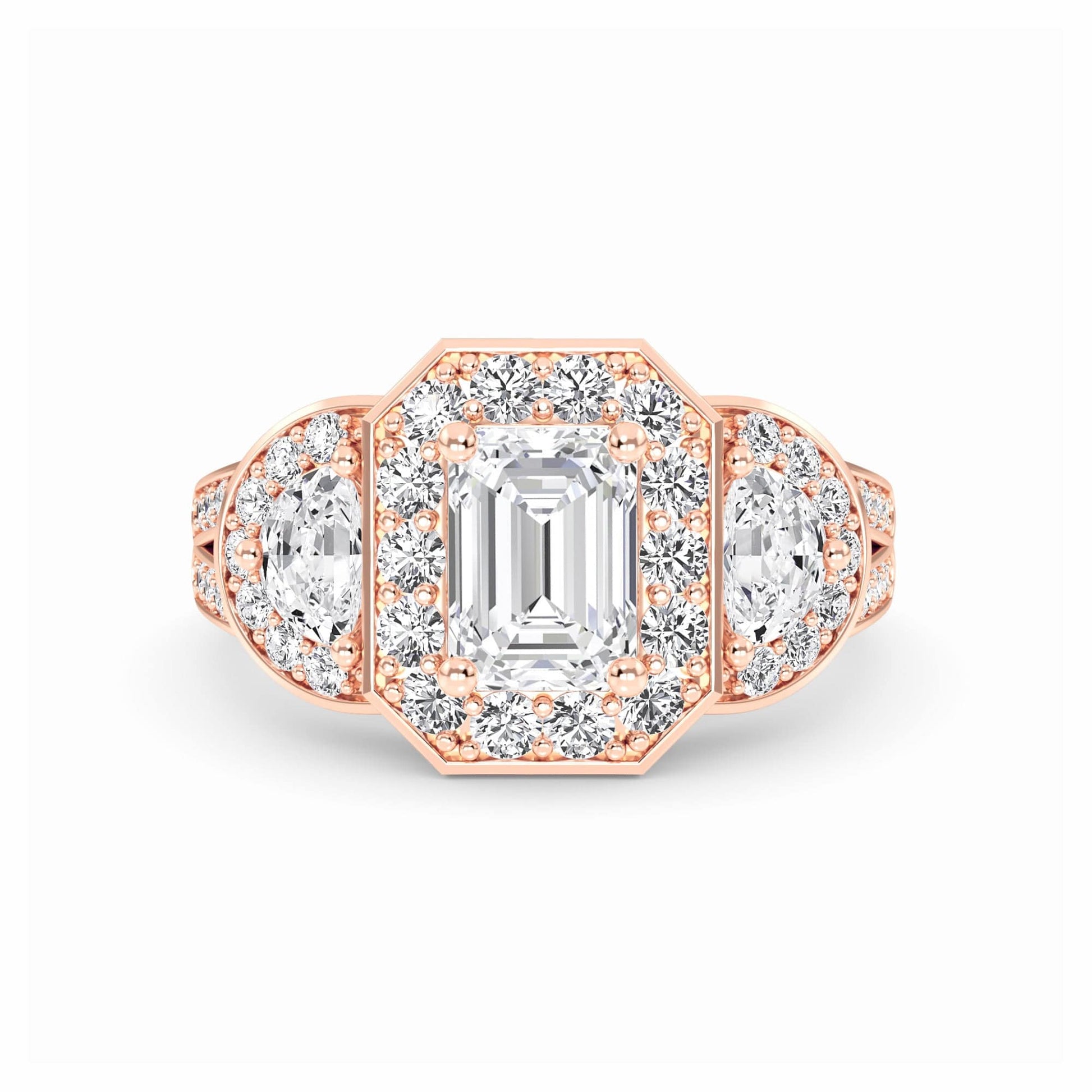 White Diamond Three-Stone Halo Engagement Ring - Journey