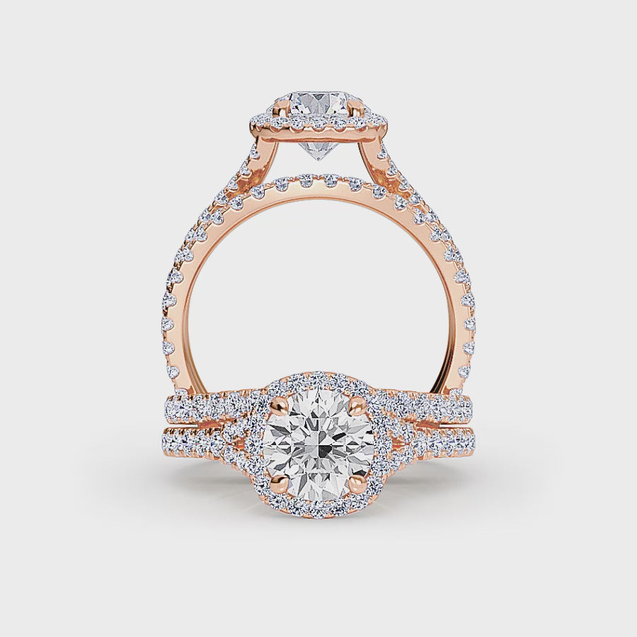 Home / All Engagment Ring / Bridal Sets / White Diamond Three Stone Halo Pave Bridal Set Engagement Ring - Ottilie
