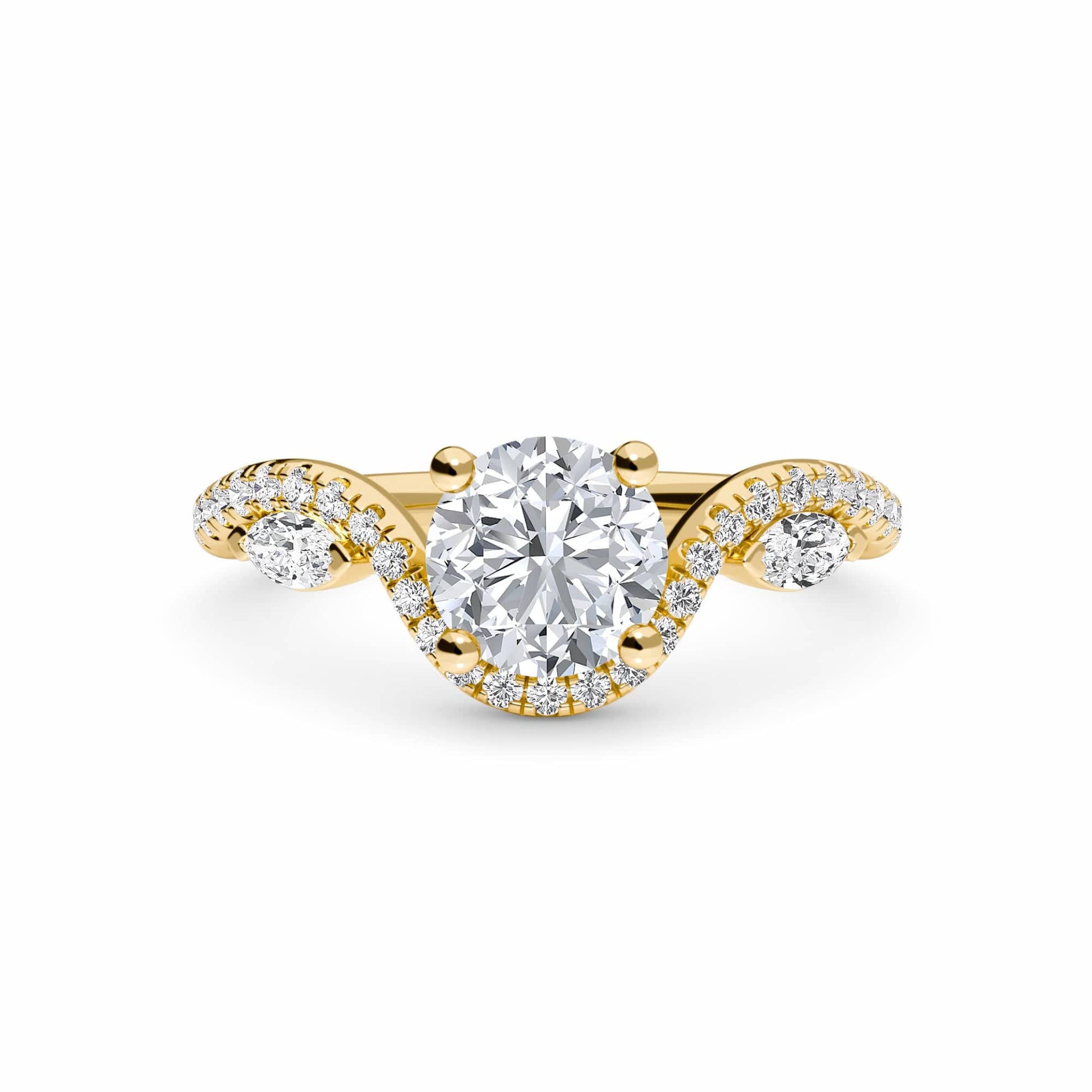 White Diamond Three Stone Twisted Band Engagement Ring - Himani - 18K Yellow Gold - 0.210 Carat Round Diamond