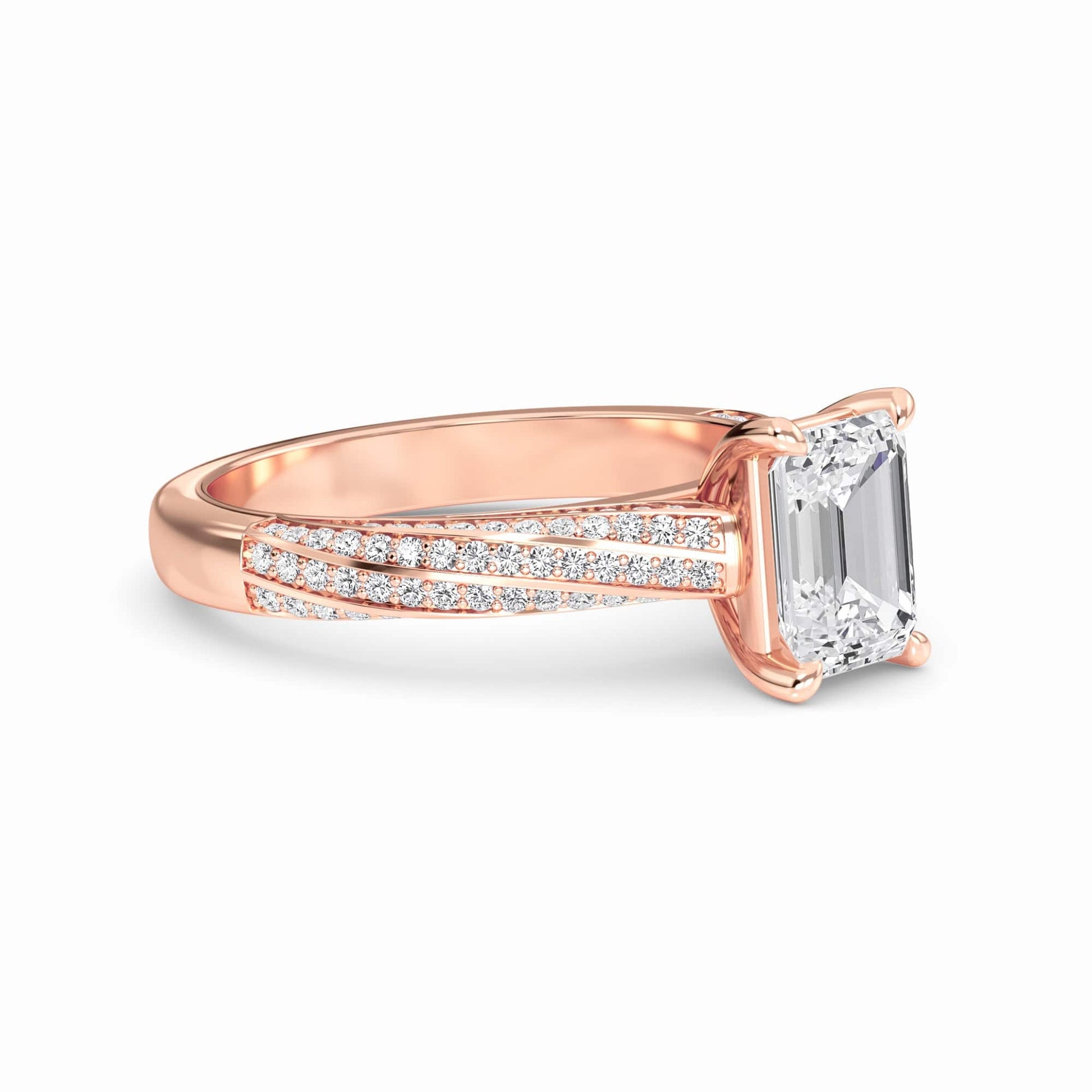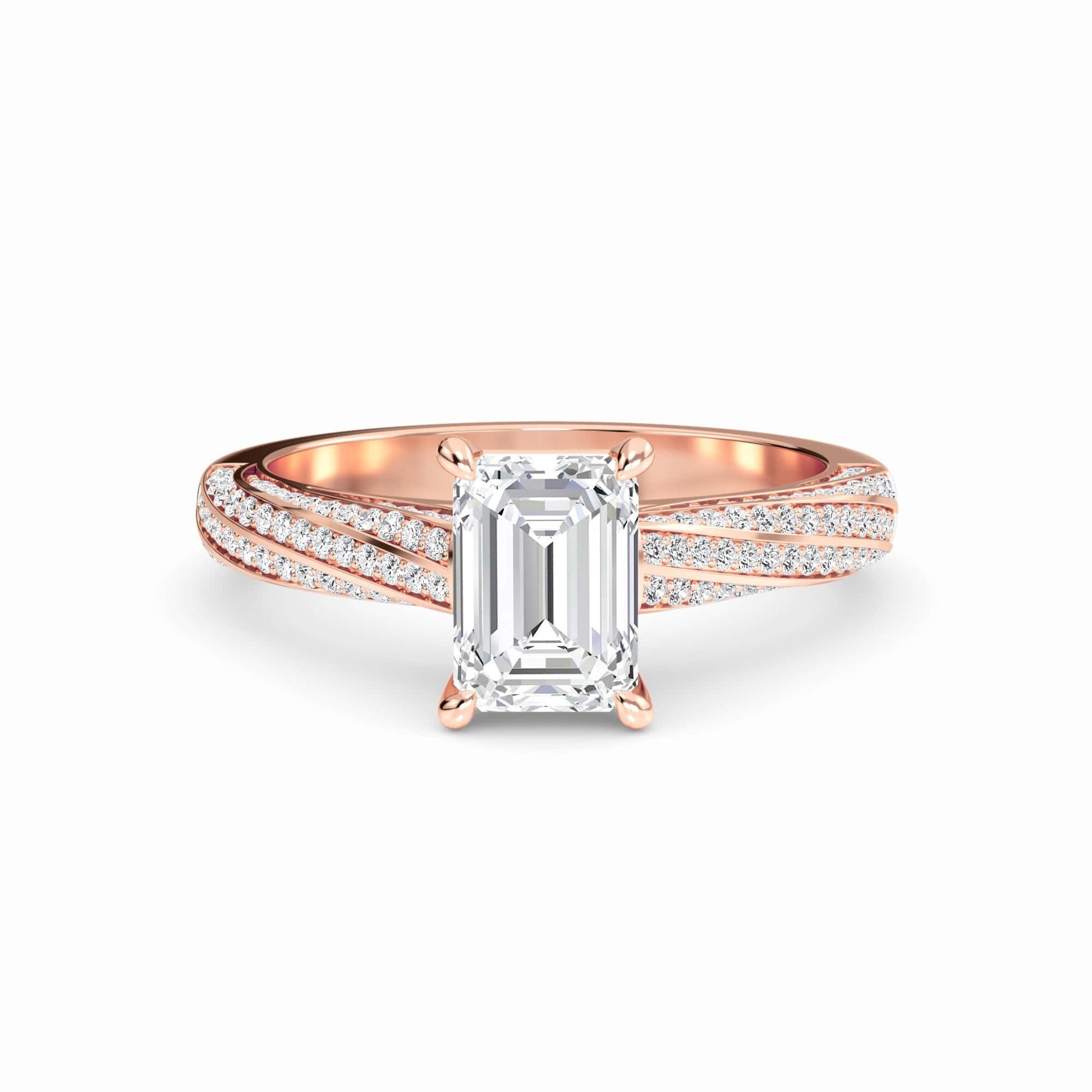 The Skylar engagement ring features a brilliant white diamond center stone set atop a modern crossover band adorned with three dazzling rows of pave diamonds. This sophisticated design, free of additional accent stones, emphasizes the sparkle of the pave and center diamond. Crafted in your choice of luxurious 18k gold: white, rose, yellow, blackened, or classic platinum.