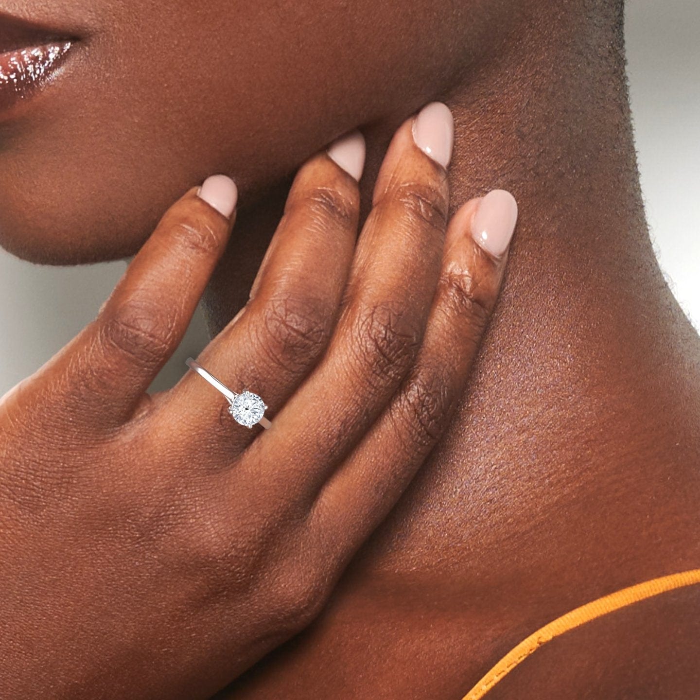 Sleek and sophisticated, the Bhavna ring showcases a brilliant white diamond set in a gracefully twisted 18K gold band, symbolizing unity and timeless love. Available in White Gold, Rose Gold, Yellow Gold, Blackened Gold, and Platinum, this solitaire engagement ring is a modern classic designed to shine forever.