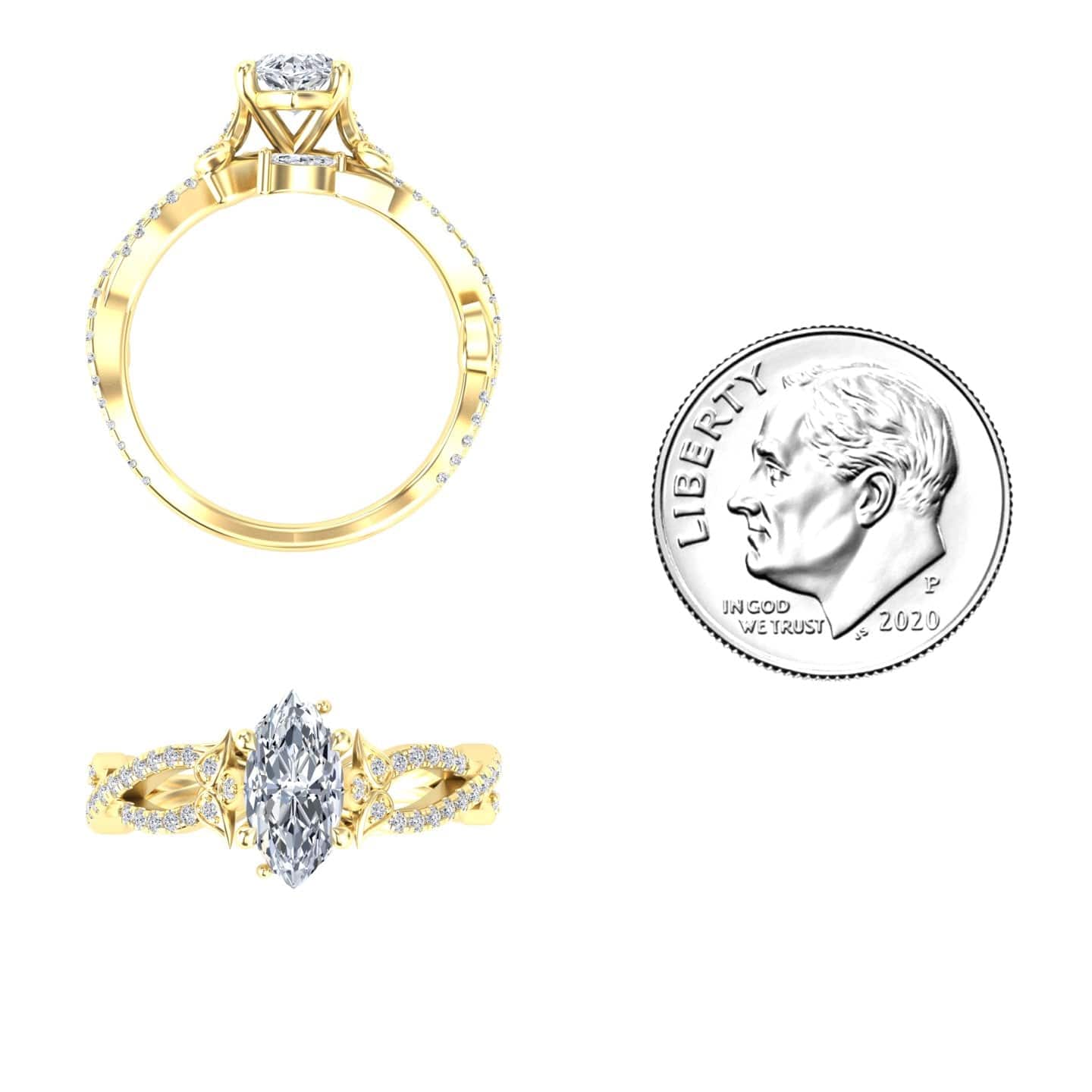 Discover the captivating beauty of the Shan white diamond engagement ring, featuring a pave-set twisted vine and accented by a dazzling combination of round and marquise side stones. Personalize this exquisite ring in your preferred 18k gold: classic white gold, romantic rose gold, warm yellow gold, contemporary blackened gold, or precious platinum. A symbol of intricate beauty and lasting commitment.