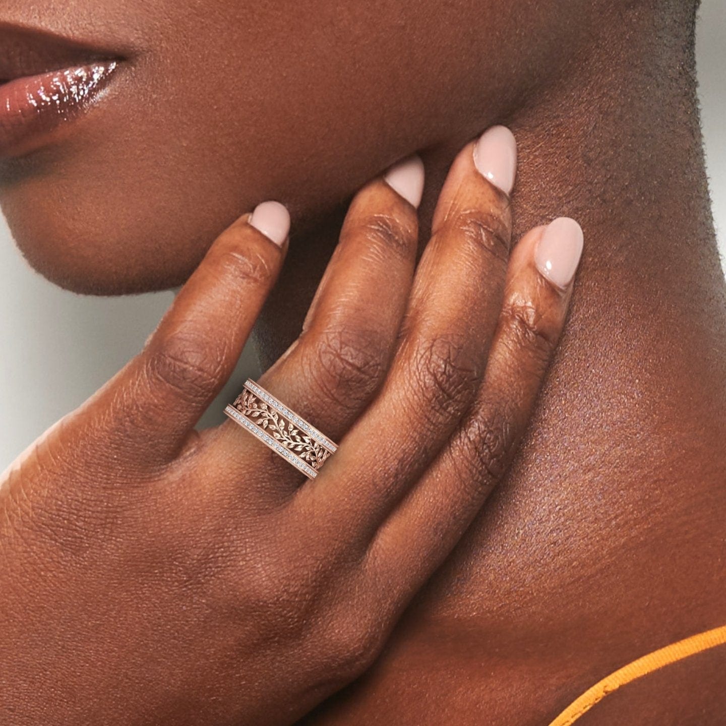 Home / Jewelry / Rings / Diamond Jewelry / White Diamond Vine Motif Eternity Band - Casey