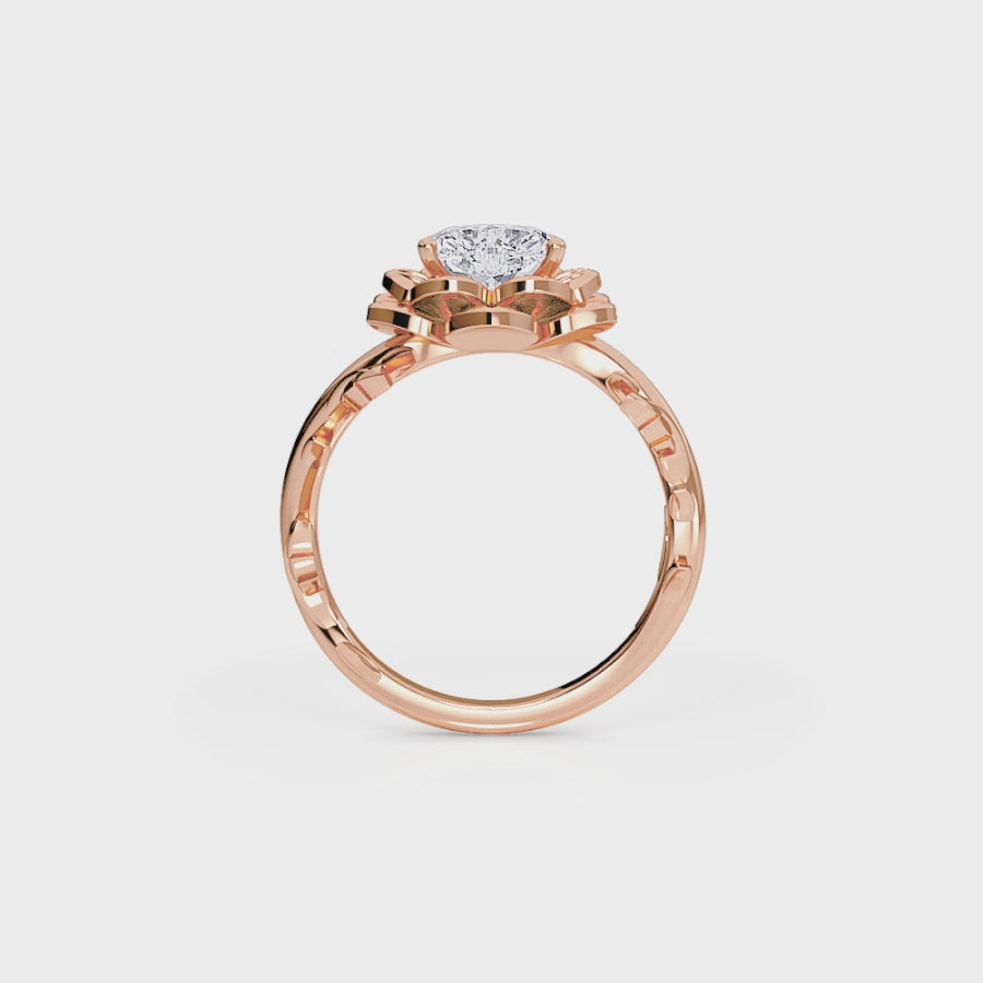 The Tianyu engagement ring showcases a beautifully intricate vintage floral design that gracefully embraces a brilliant white diamond. Crafted in your choice of five exquisite 18k gold options – white gold, rose gold, yellow gold, blackened gold, and platinum – this ring offers a romantic and timeless symbol of your blossoming love.