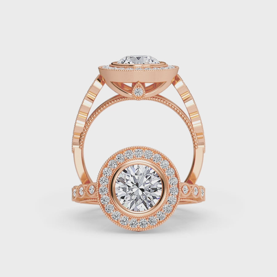 Home / All Engagment Ring / Halo / White Diamond Vintage-Inspired Milgrain Halo Engagement Ring - Elodie