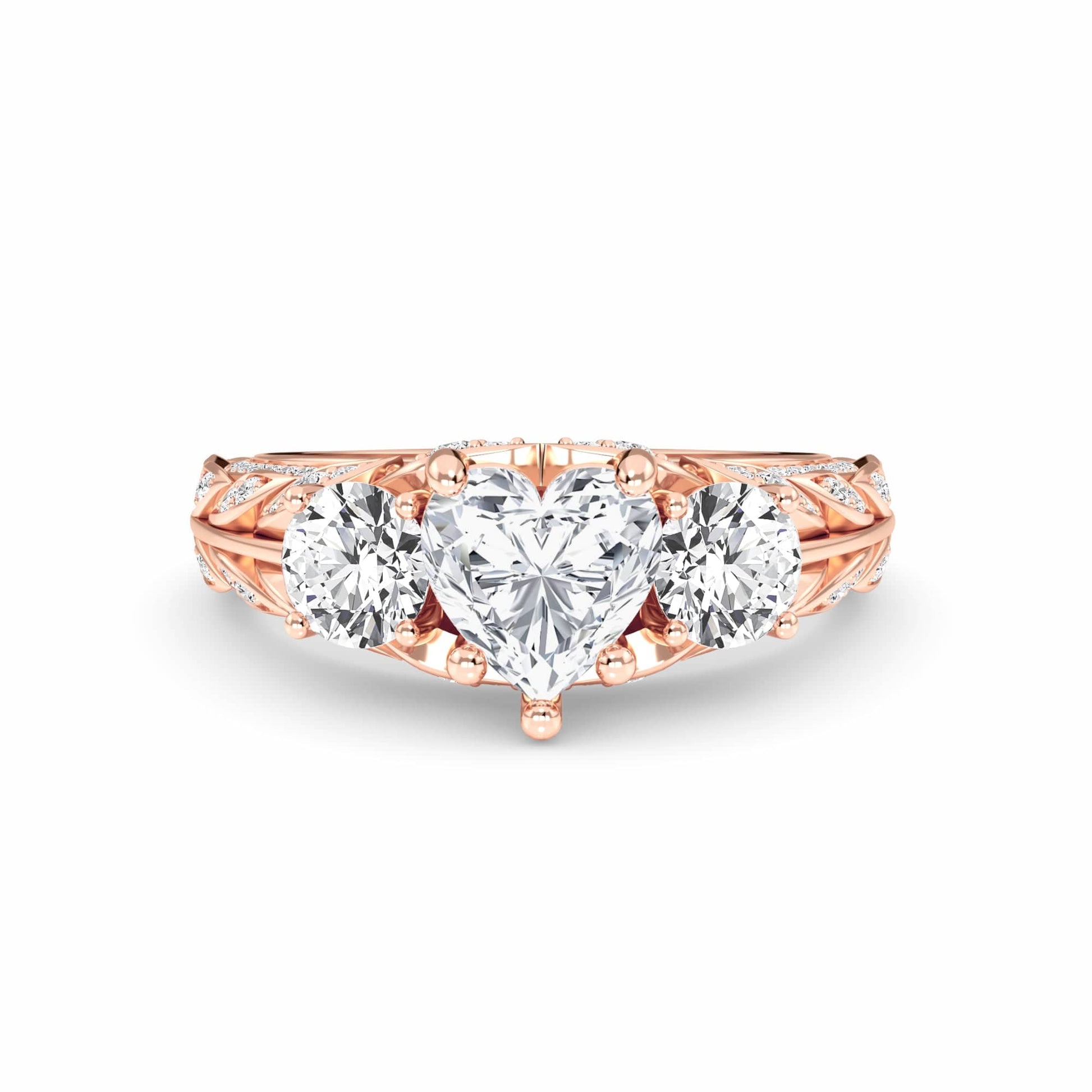 White Diamond Vintage-Inspired Three-Stone Ring - Riley - 18K Rose Gold - 0.300 Carat Heart Diamond