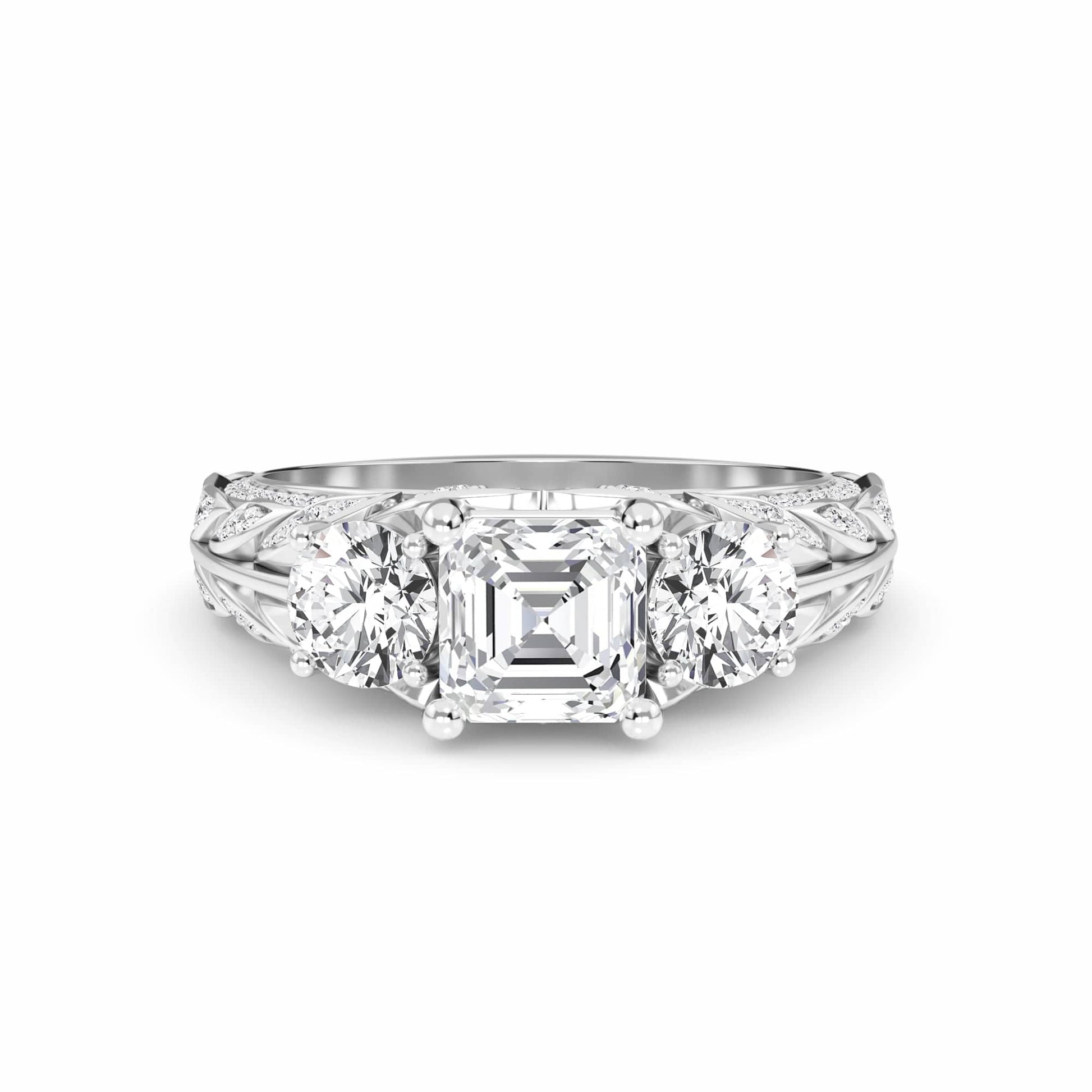 Home / White Diamond Vintage-Inspired Three-Stone Ring - Riley - 18K White Gold - 0.500 Carat Asscher Diamond