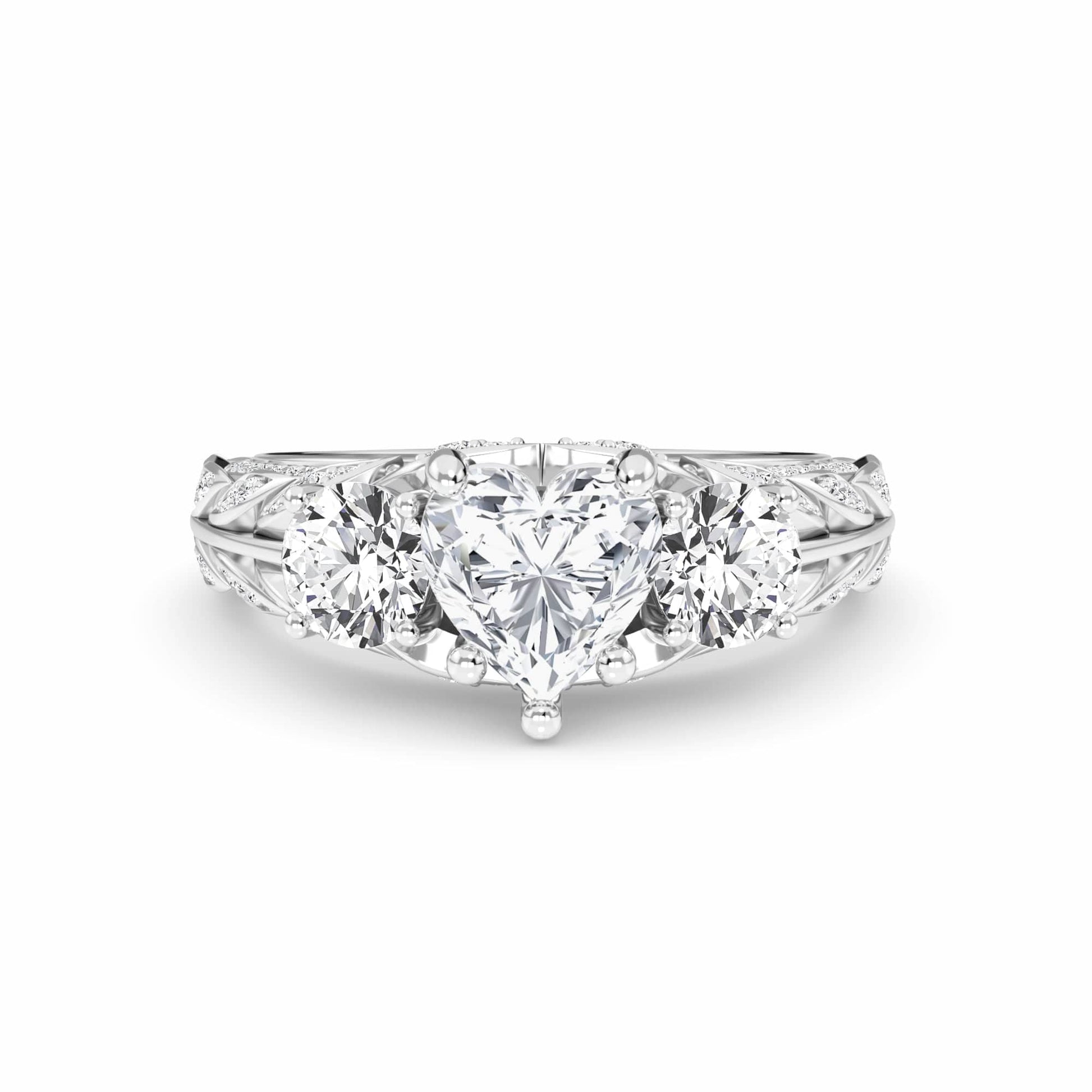 Home / White Diamond Vintage-Inspired Three-Stone Ring - Riley - 18K White Gold - 2.01 Carat Heart Diamond