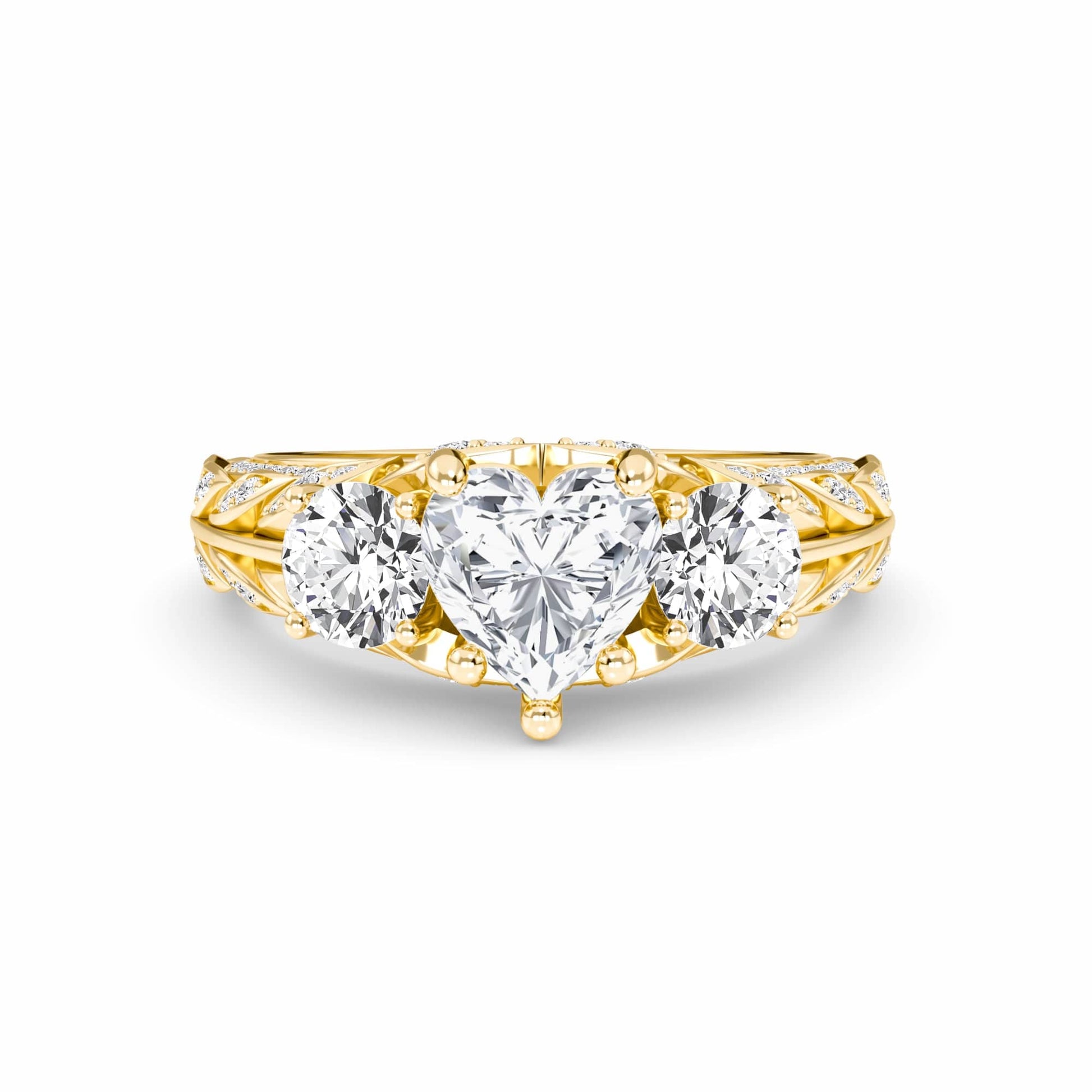 Home / White Diamond Vintage-Inspired Three-Stone Ring - Riley - 18K Yellow Gold - 2.75 Carat Heart Diamond