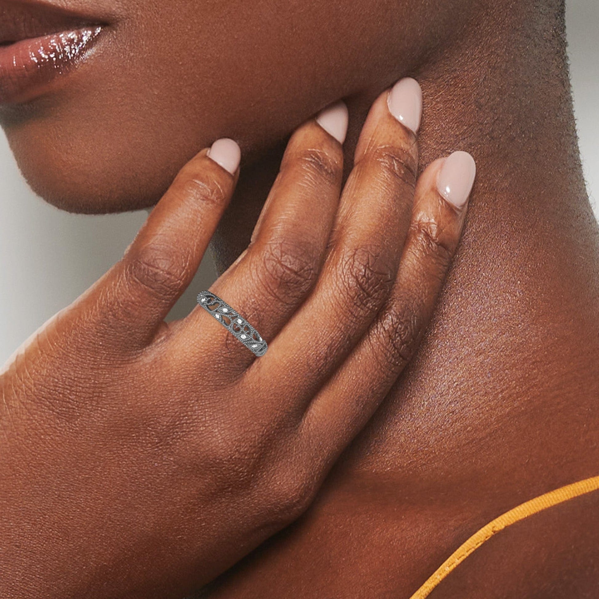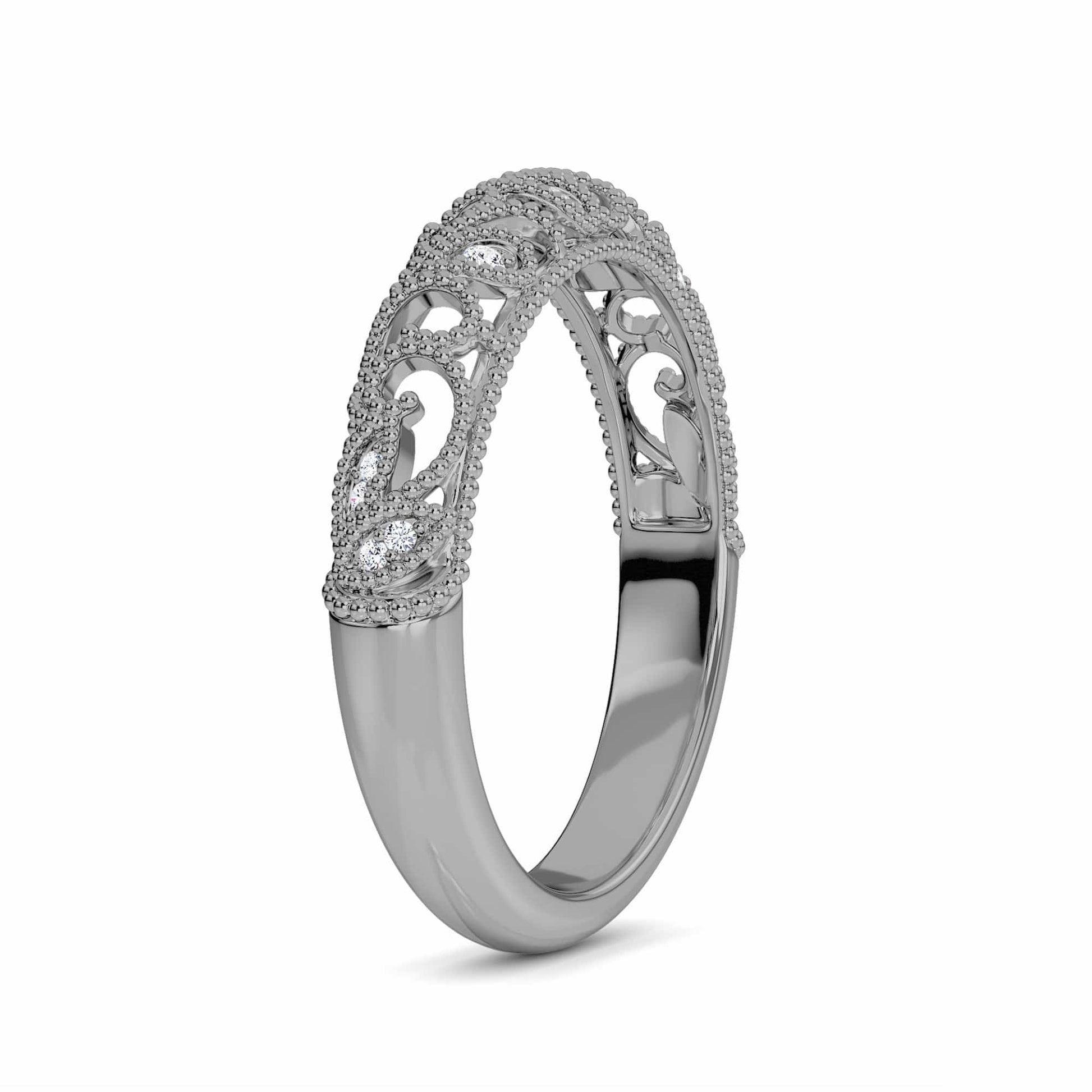 White Diamond Vintage Milgrain Wedding Band - Lian