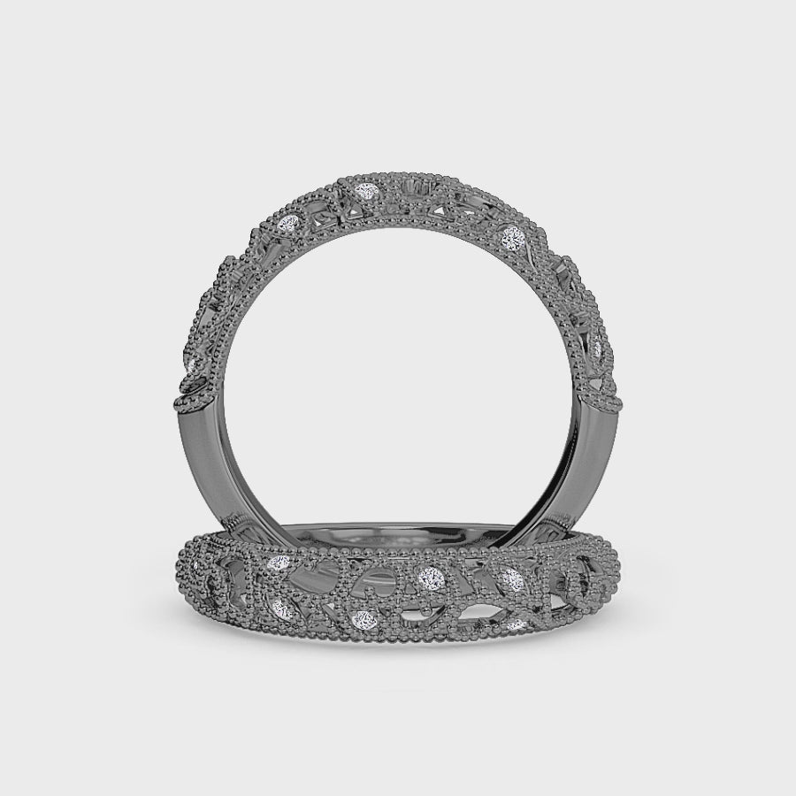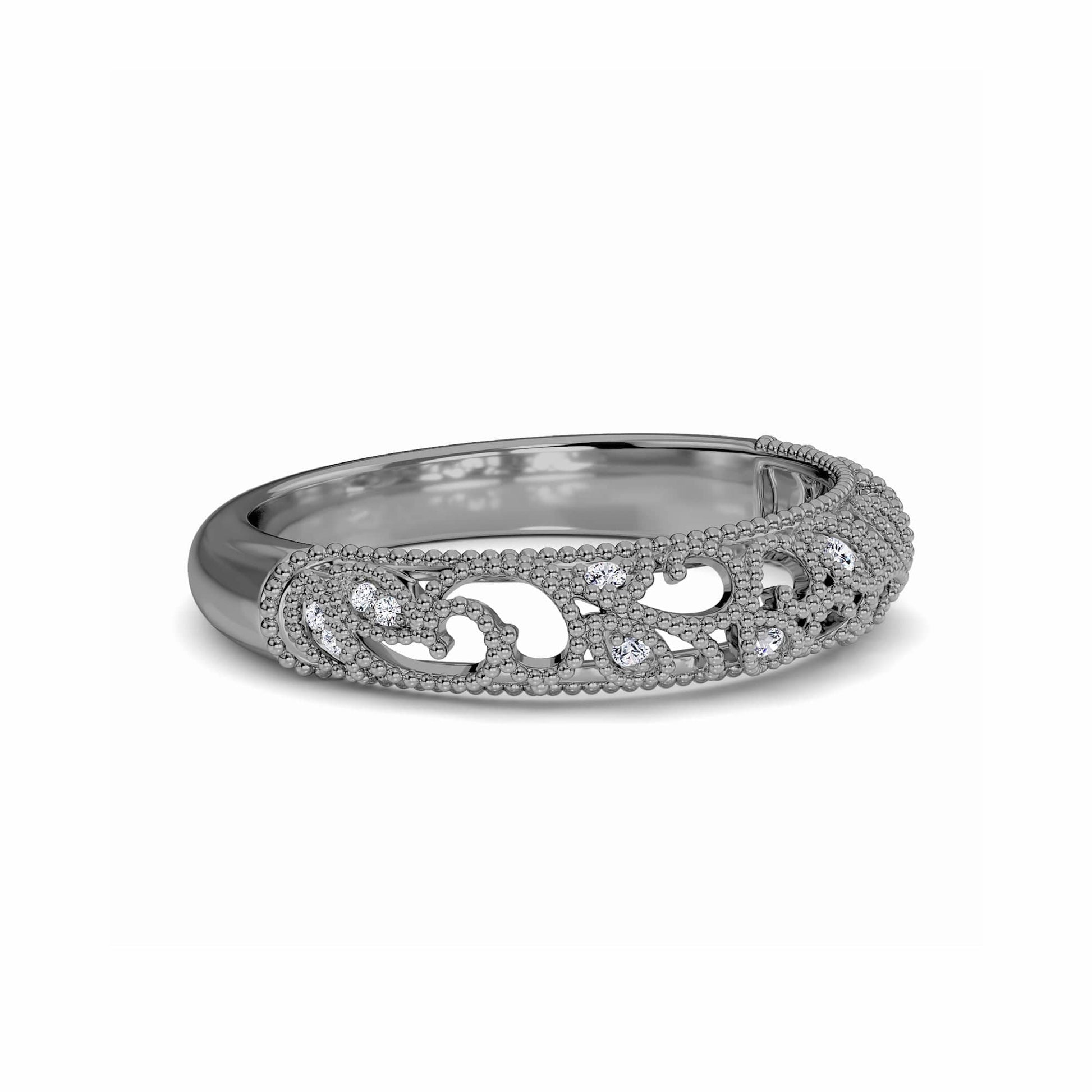 Home / Jewelry / Rings / Women's Wedding Ring / White Diamond Vintage Milgrain Wedding Band - Lian