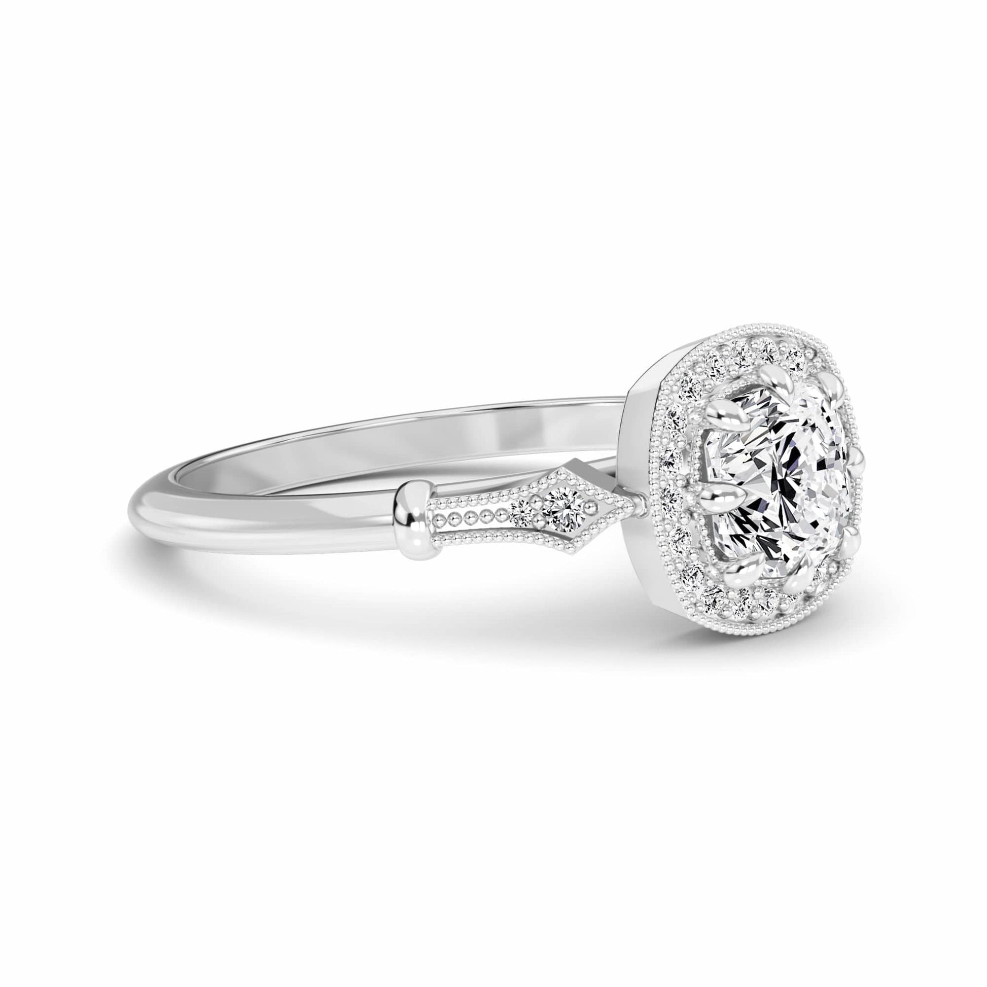 White Diamond Vintage Style Halo Engagement Ring - Arya