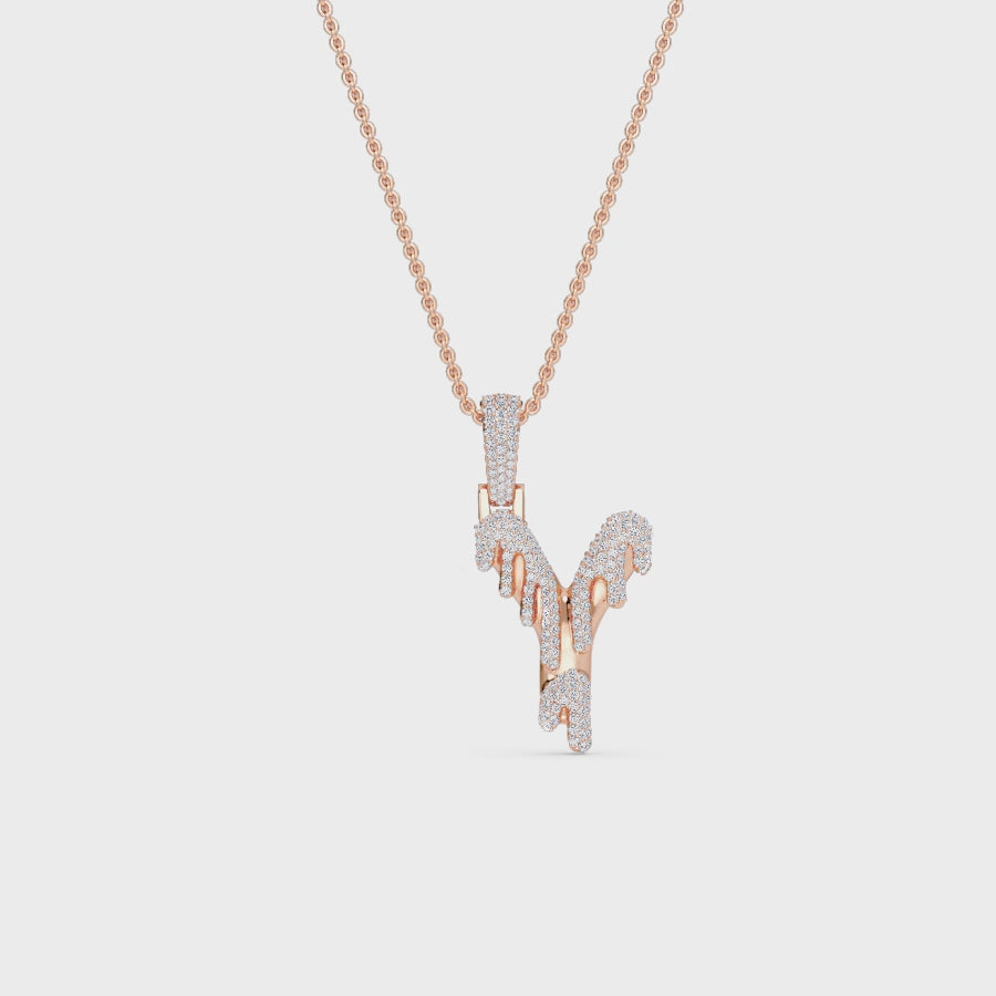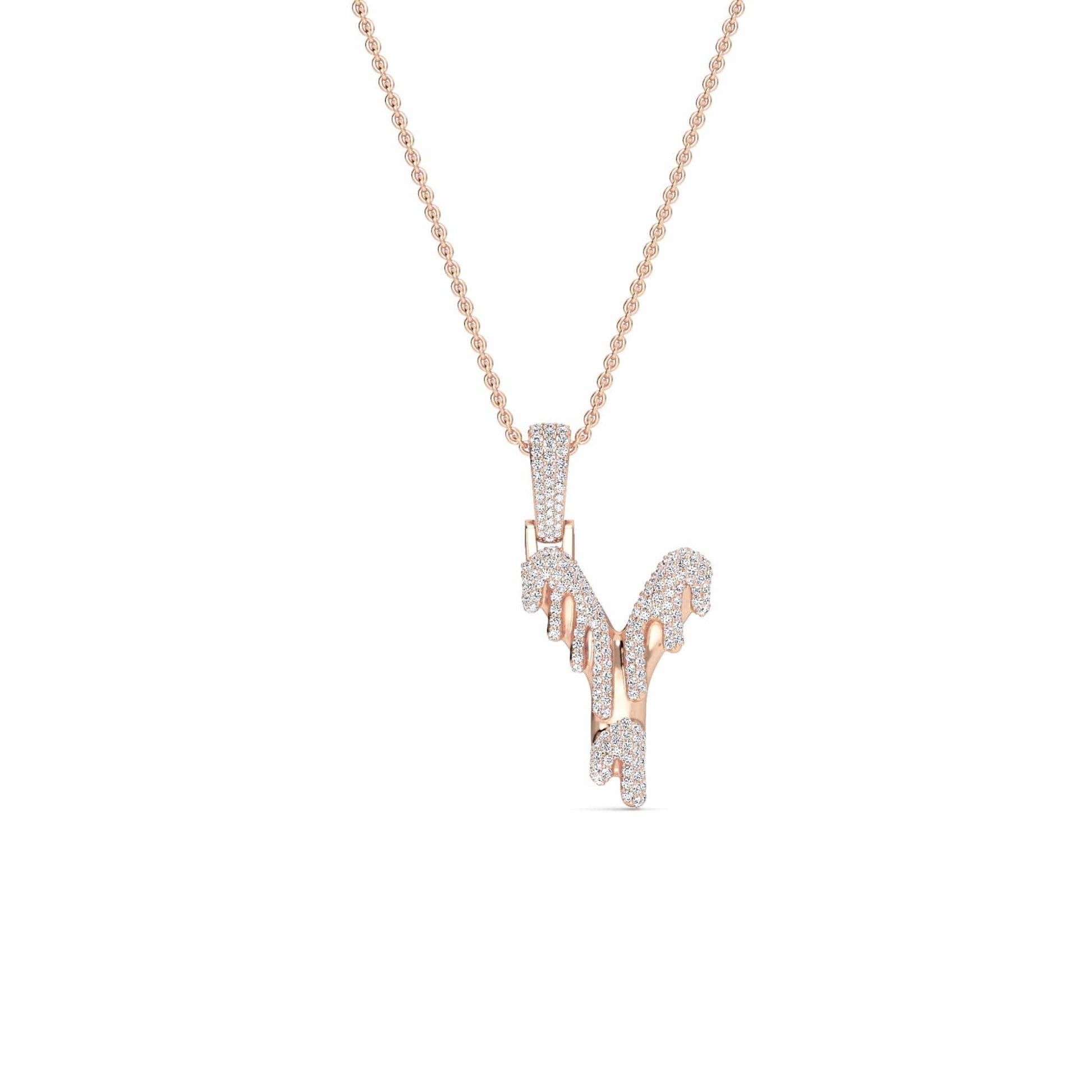 Y Initial Dripping Diamond Pendant Necklace - Yash